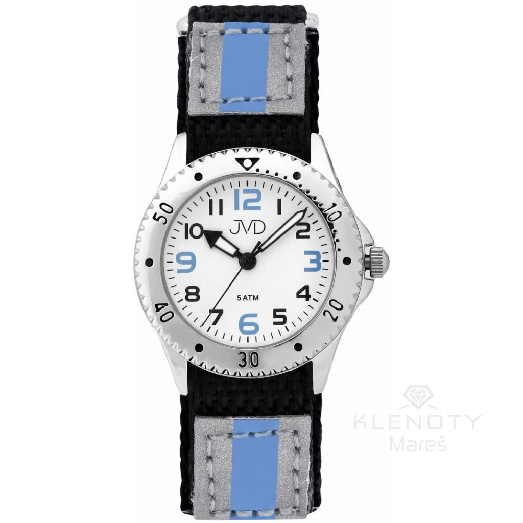 Chlapecké náramkové hodinky s modročerným řemínkem.