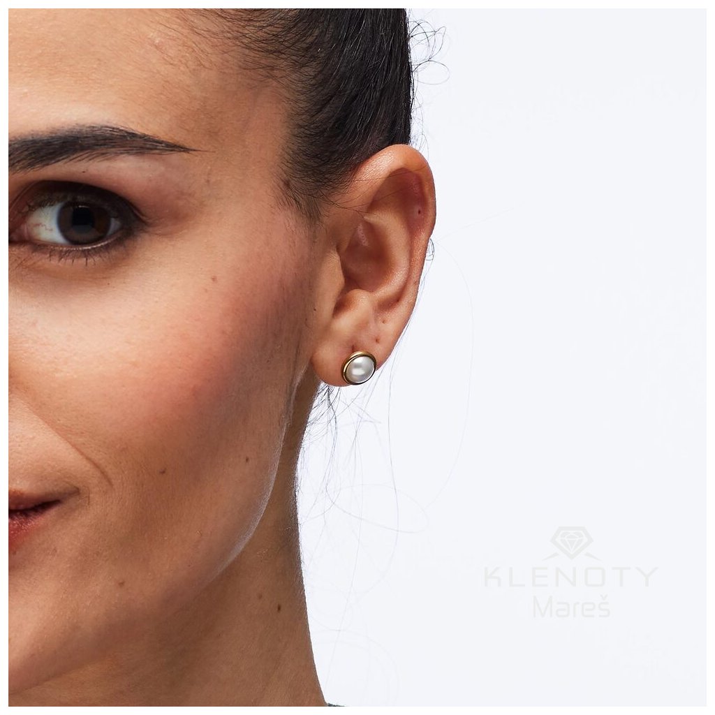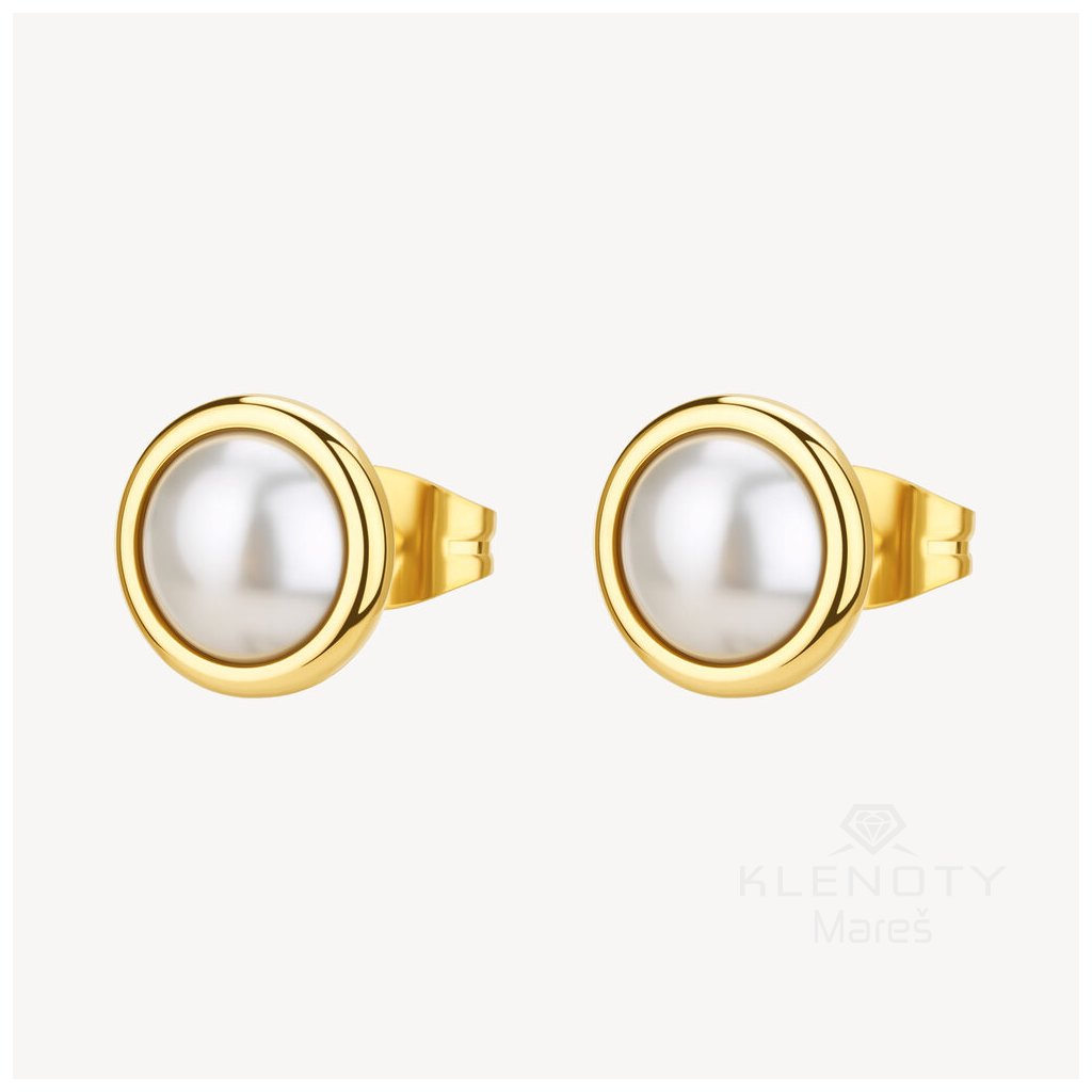 Půvabné ocelové náušnice ve žluté povrchové úpravě s imitací perly.