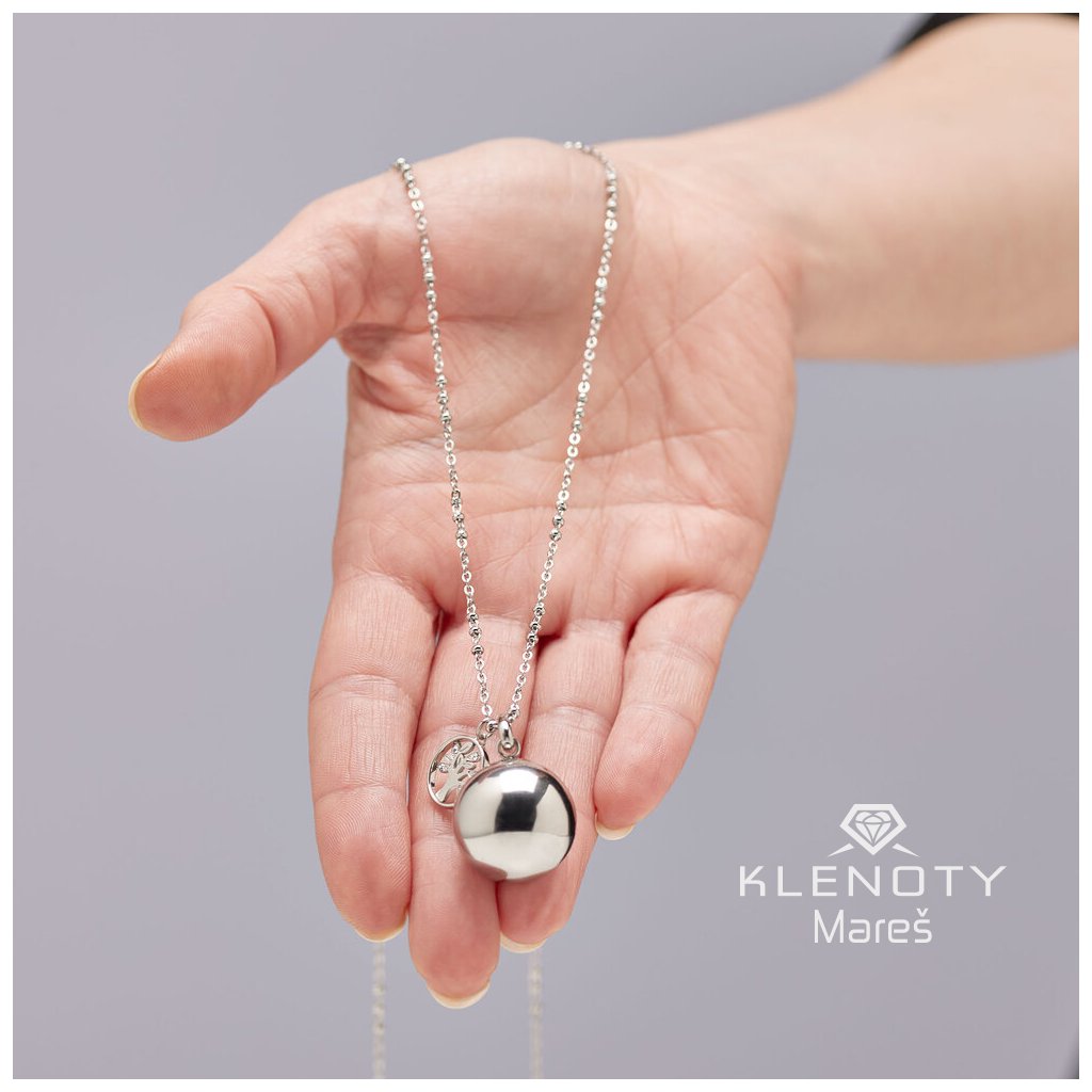 Určen pro těhotné ženy, nabízí krásnou rolničku o průměru 20 mm a oblíbeným přívěskem s motivem stromu života s čirými kameny.