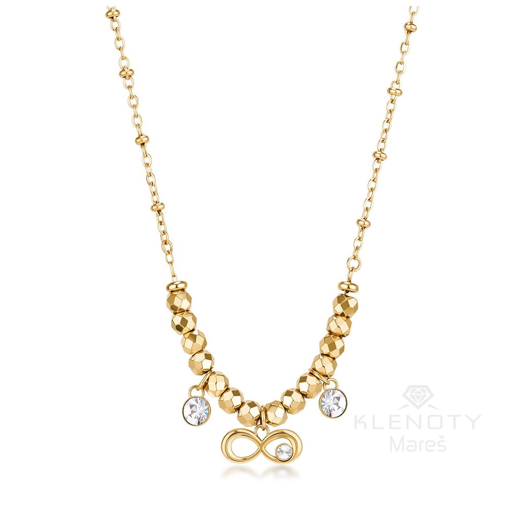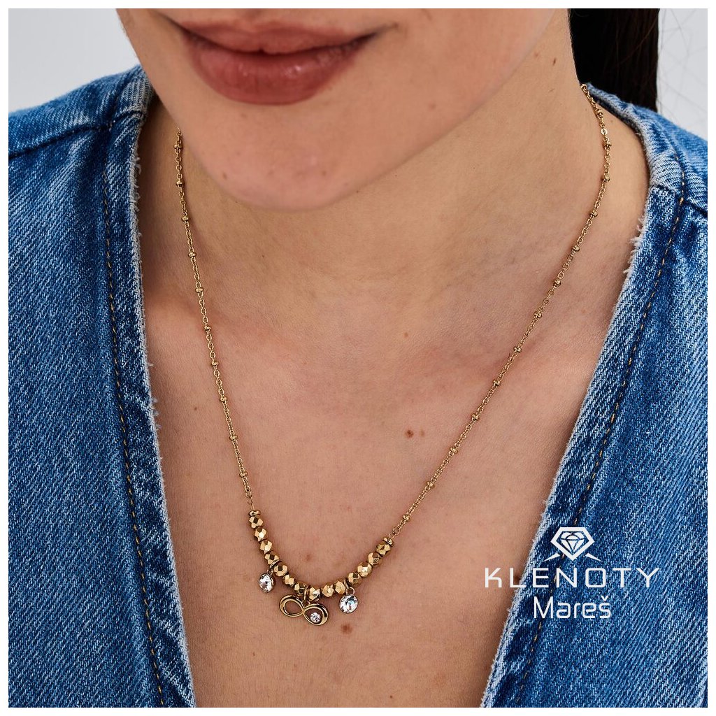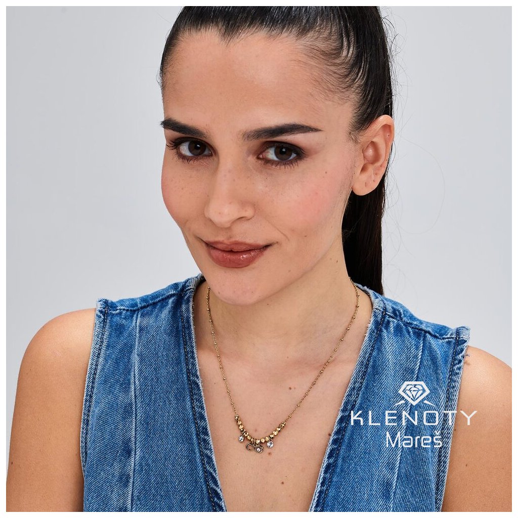 Slušivý náhrdelník je elegantní šperk navržený pro ženy, který kombinuje krásu bílé barvy kamenů s odolným materiálem ve žluté povrchové úpravě.