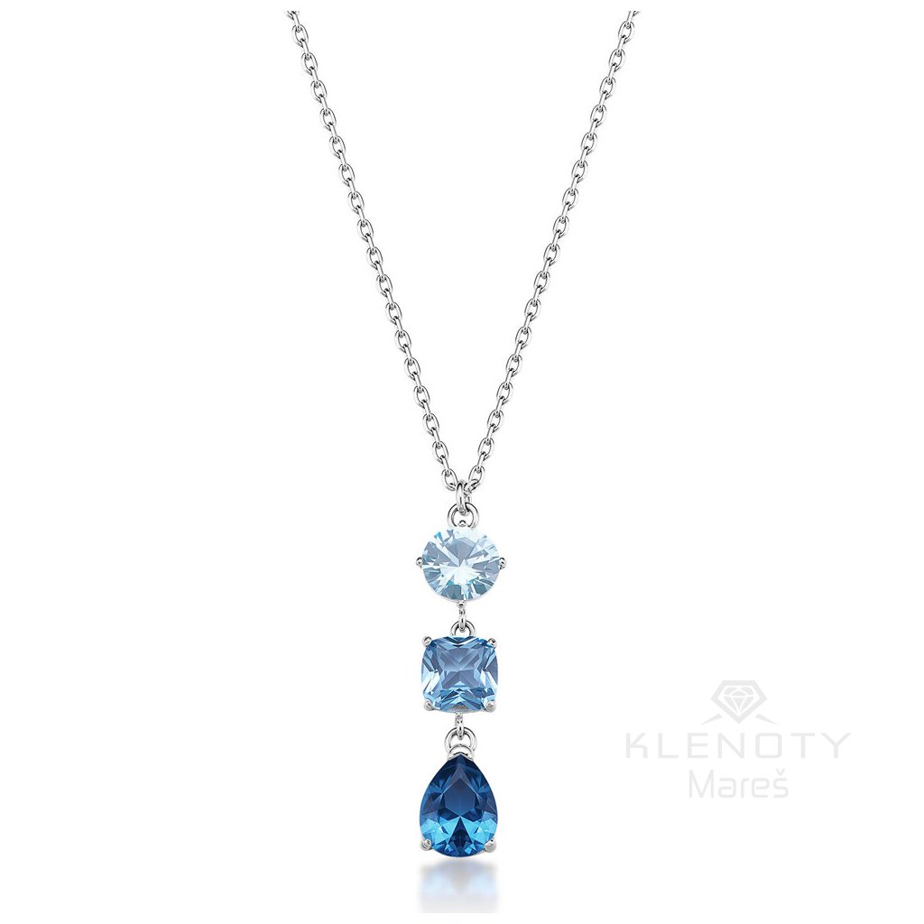 Ocelový náhrdelník z chirurgické oceli, osazený modrými krystaly.