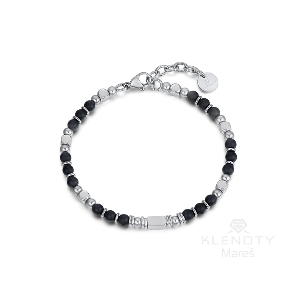 Doplňte svůj styl šperkem, který v sobě nese sílu i eleganci. Tento náramek Luca Barra střídá matné černé přírodní kameny (achát) s lesklými detaily z chirurgické oceli. Středový ocelový segment dodává náramku moderní, technický vzhled, který skvěle vynikne samostatně i v kombinaci s hodinkami. Ideální volba pro muže, který si potrpí na detaily s italským rodokmenem.