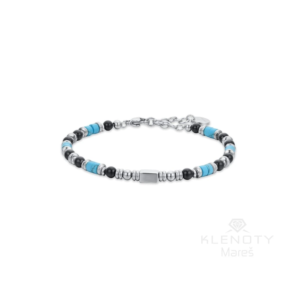 Podtrhněte svou mužnost doplňkem, který v sobě snoubí italský cit pro design a sílu přírodních elementů. Tento náramek od značky Luca Barra kombinuje hlubokou čerň achátu s osvěžujícími tóny tyrkysu a leskem vysoce kvalitní chirurgické oceli. Centrální ocelový prvek dodává šperku moderní, geometrický vzhled, který skvěle doplní jak neformální outfit s džíny, tak elegantní košili.