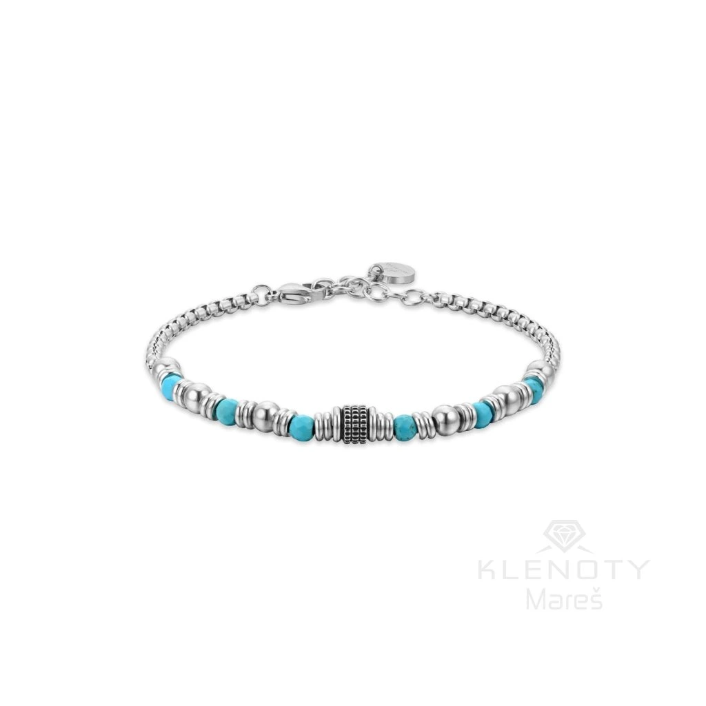 Dopřejte svému zápěstí doplněk, který v sobě nese víc než jen estetiku. Tento náramek od italské značky Luca Barra kombinuje chladnou eleganci chirurgické oceli s energií přírodního tyrkysu.