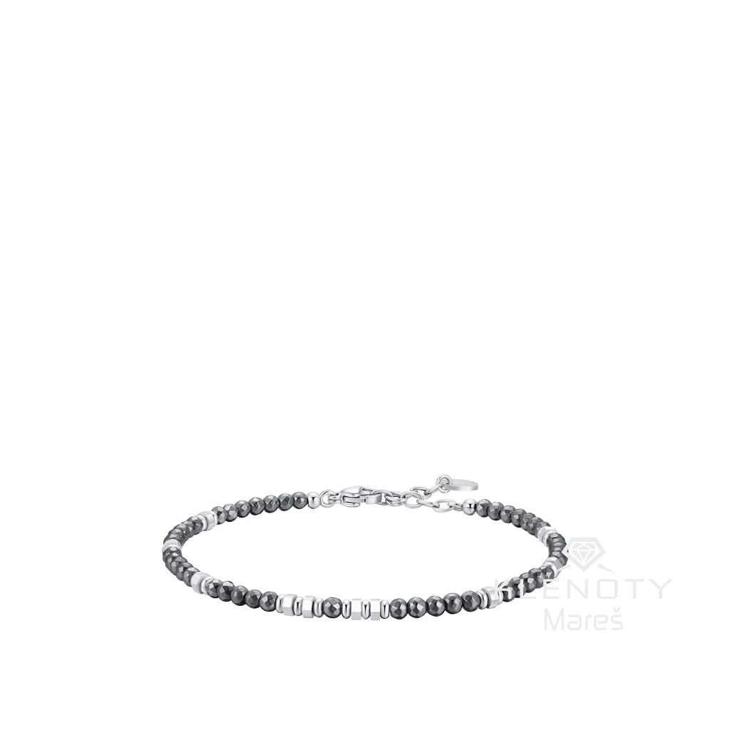 Doplňte svůj styl doplňkem, který v sobě nese sílu i eleganci. Tento náramek od italské značky Luca Barra sází na podmanivý kontrast temně šedých tónů broušeného hematitu a vysoce leštěné chirurgické oceli. Každý korálek je precizně fasetován, aby odrážel světlo a dodal vašemu zápěstí moderní, industriální šmrnc. Perfektní volba pro muže, který hledá nadčasový šperk vhodný k hodinkám i k samostatnému nošení.