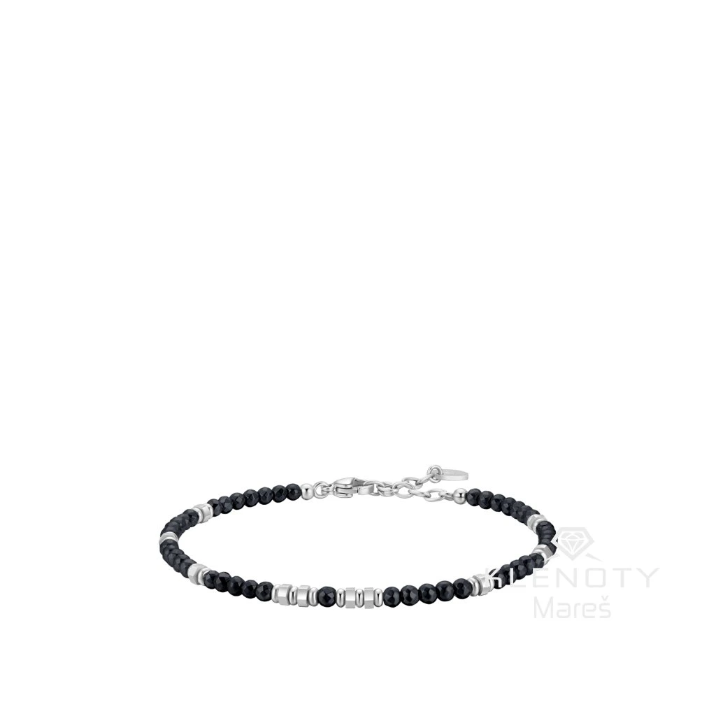 Dodejte svému zápěstí charakter šperkem, který v sobě snoubí syrovou krásu přírody a lesk ušlechtilé oceli. Tento náramek od italské značky Luca Barra sází na podmanivý kontrast temně šedých tónů broušeného hematitu a hluboké černi achátu.