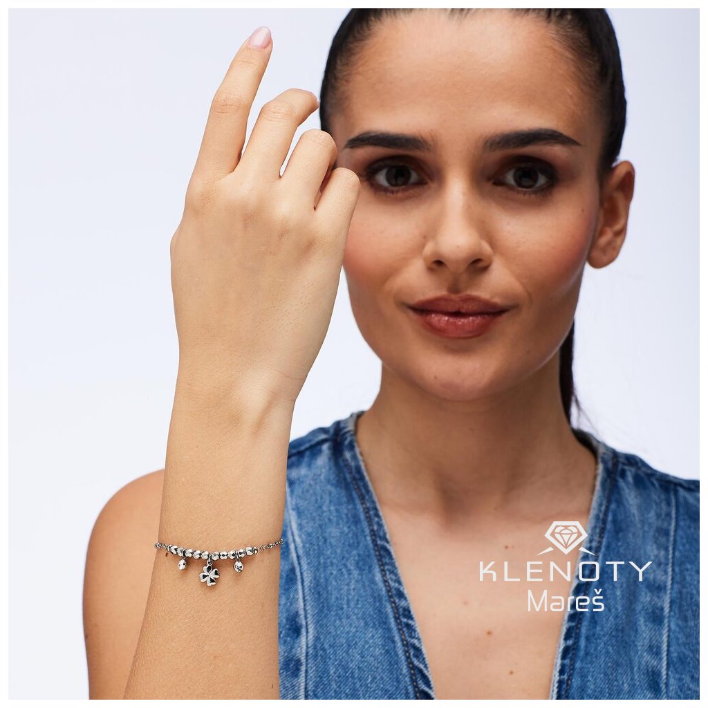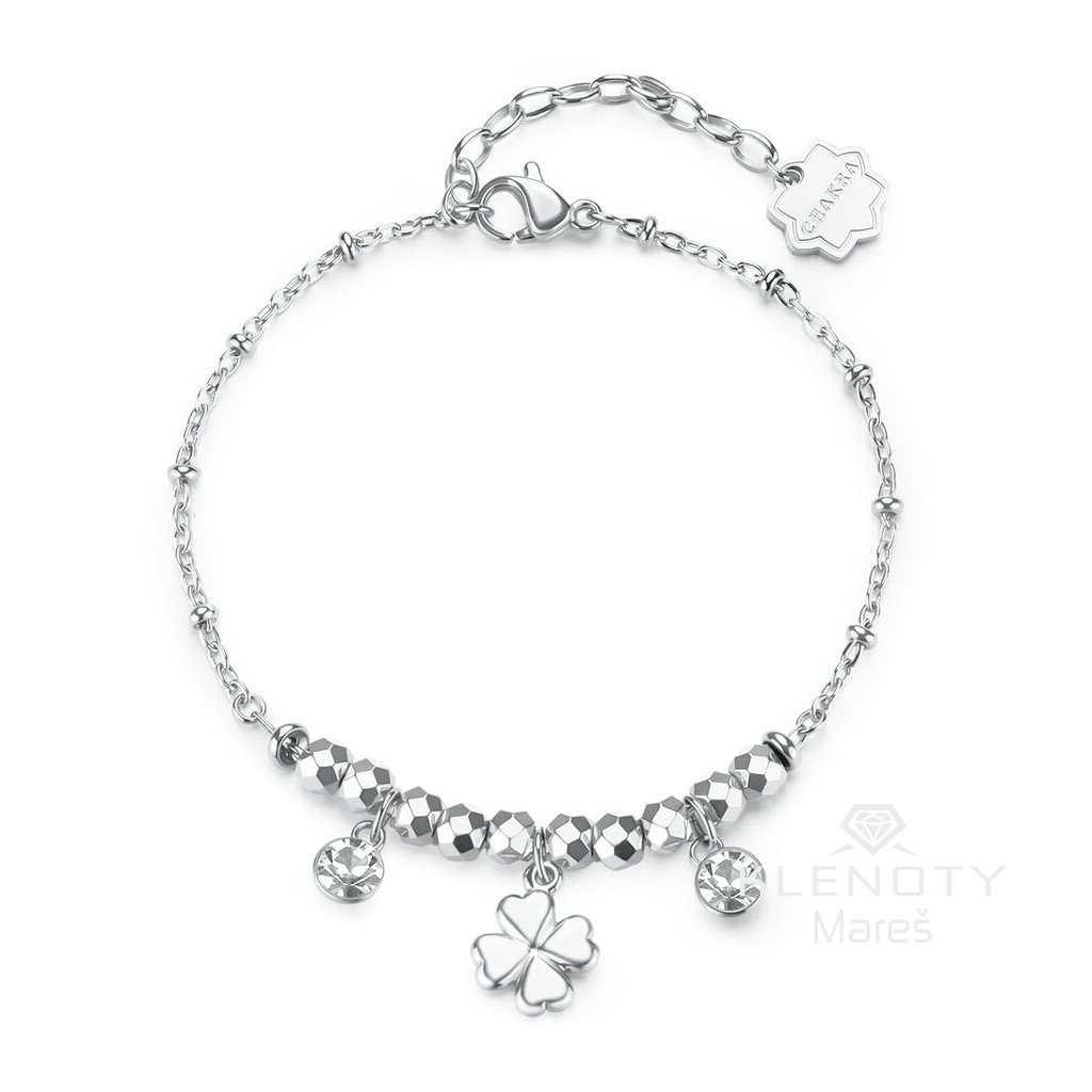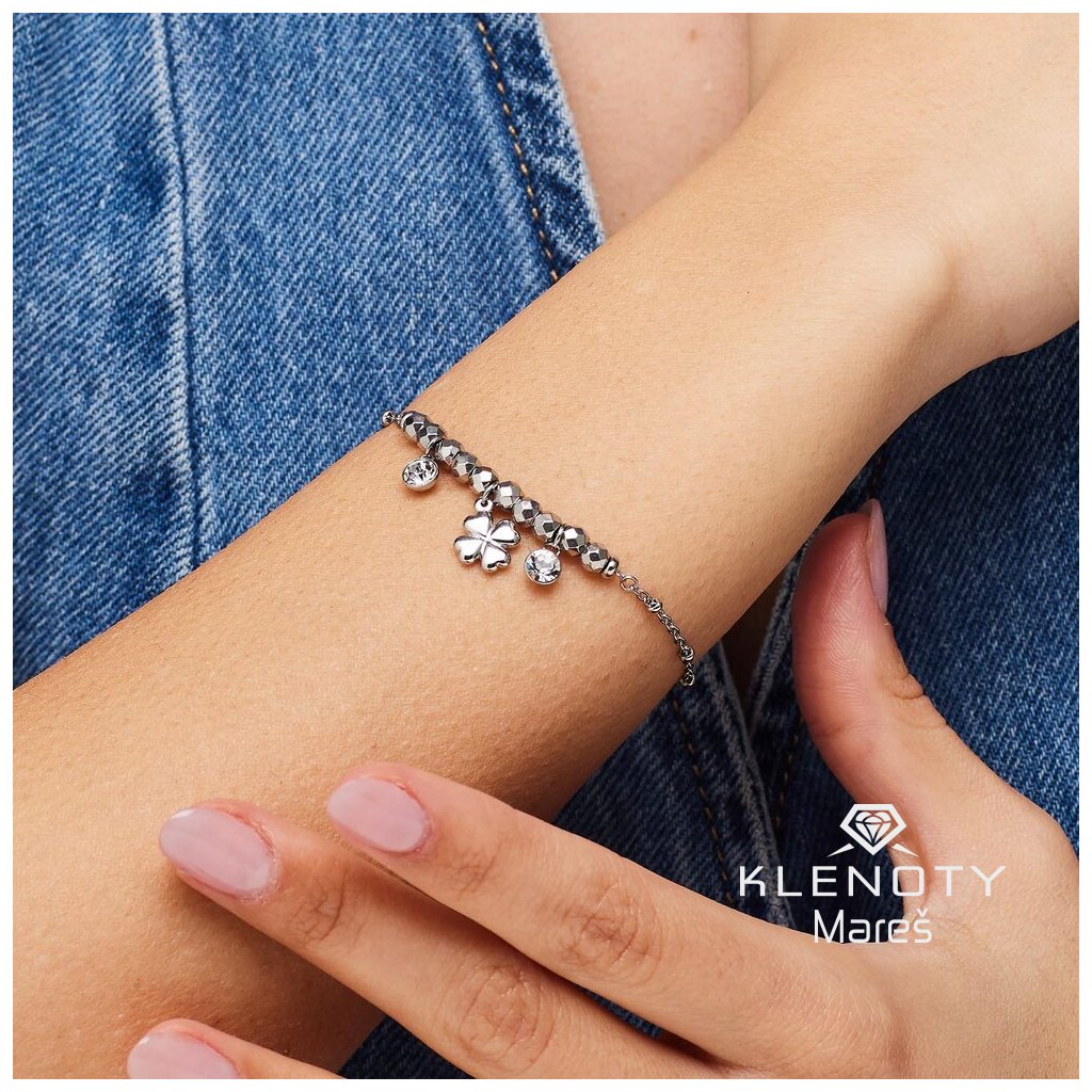 Je ozdoben čirými kameny a středového přívěsku ve tvaru čtyřlístku, které dodávají jemný a sofistikovaný vzhled.