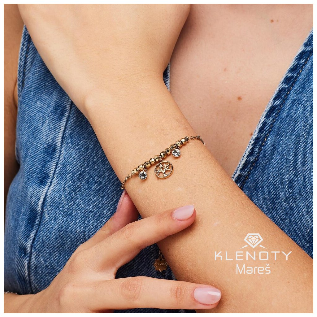 Zdobený třpytivými krystaly, se symbolem módního stromu života jeho nadčasový design s jemnými detaily zaručí, že bude skvěle ladit s každým outfitem.