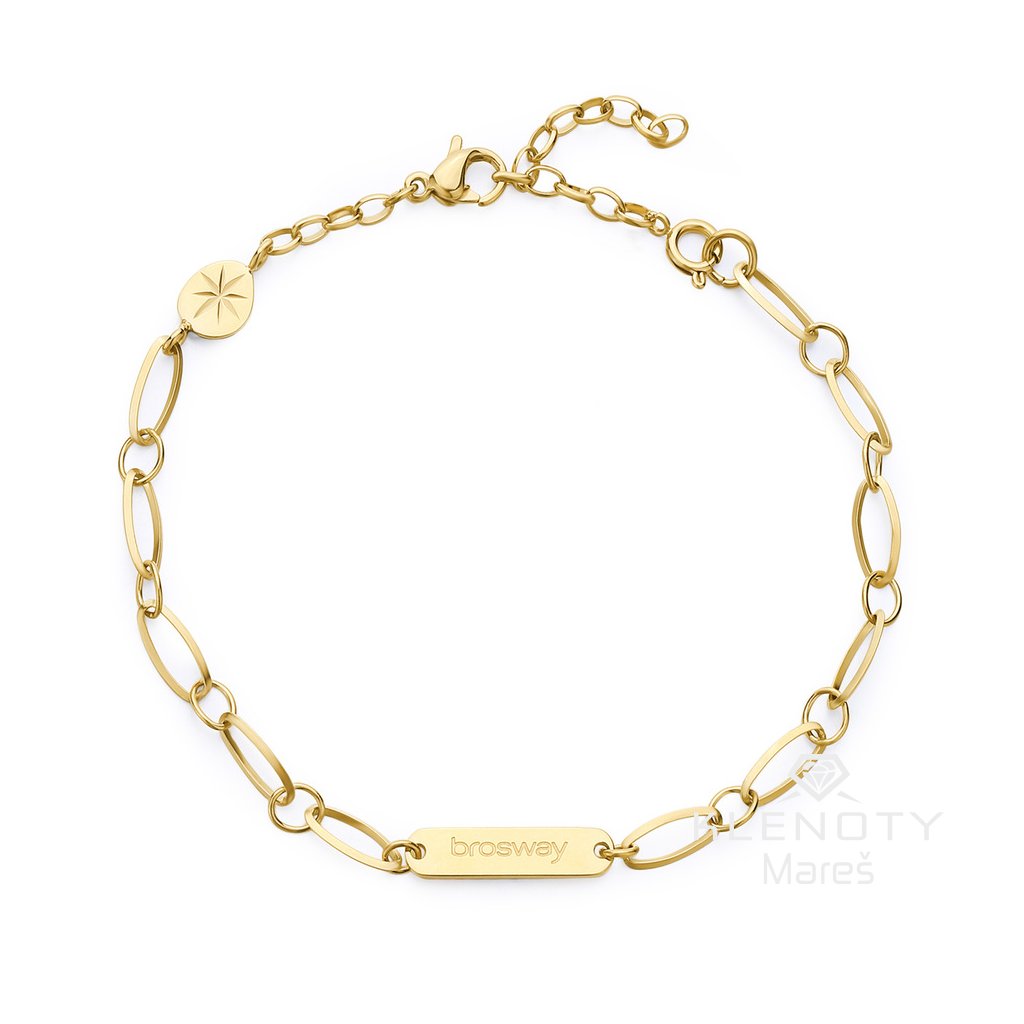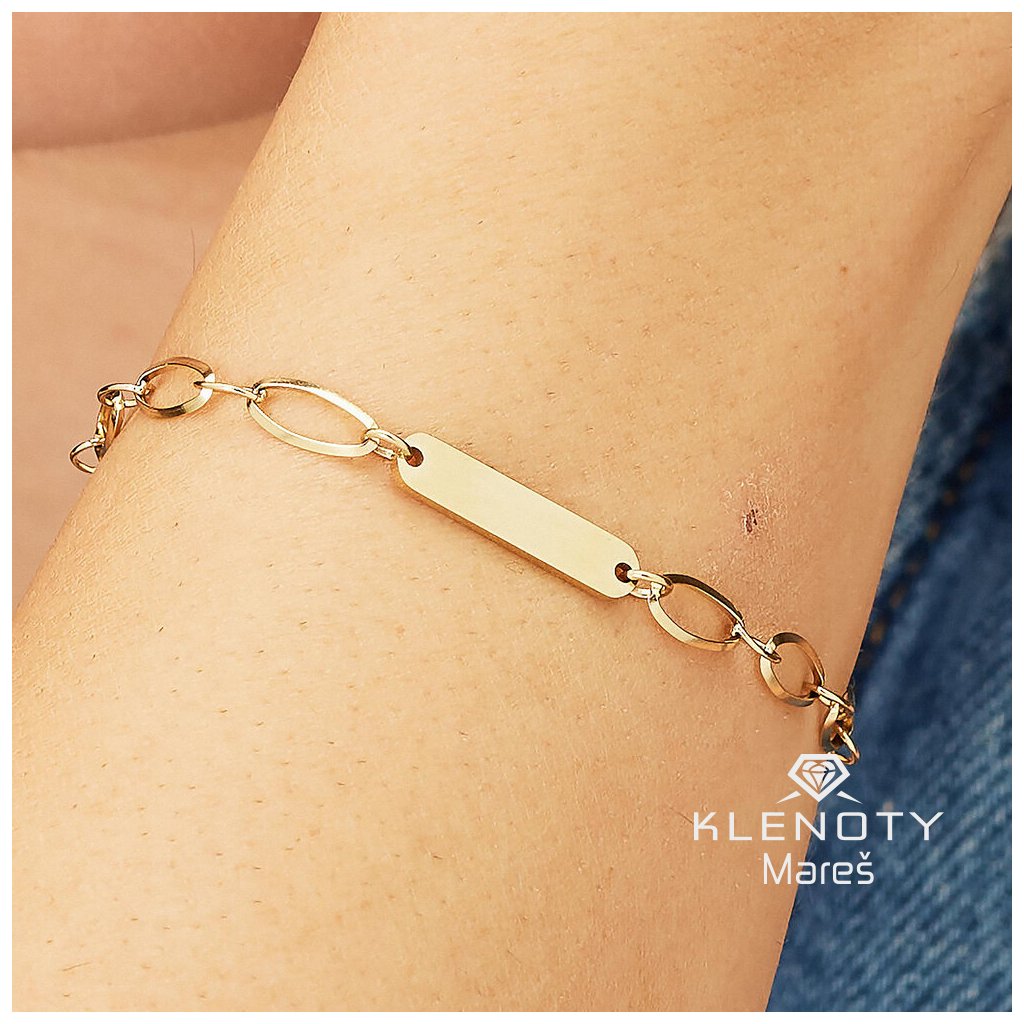 Ocelový náramek s destičkou ve žluté povrchové úpravě.
