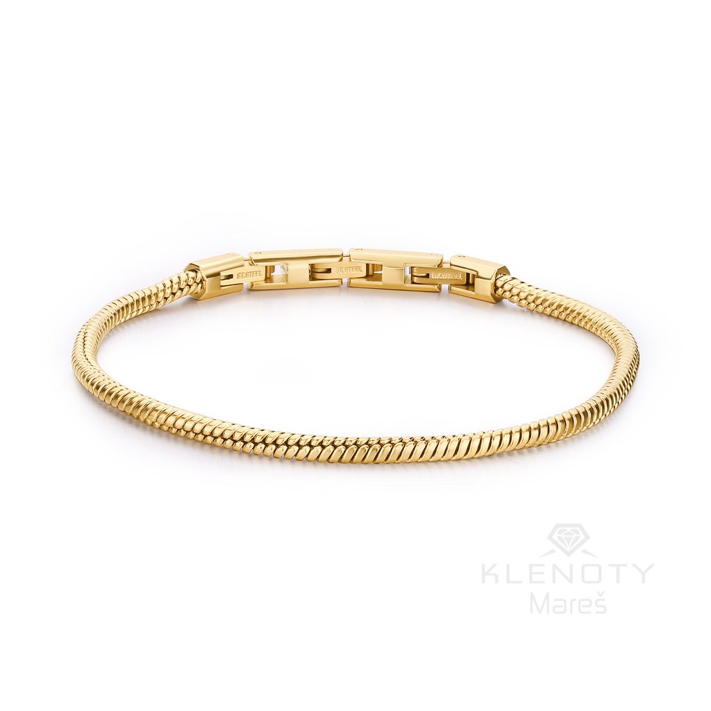 Pánský ocelový náramek ve žluté povrchové úpravě.