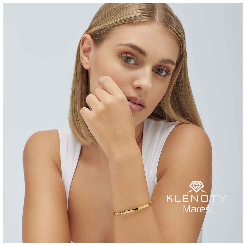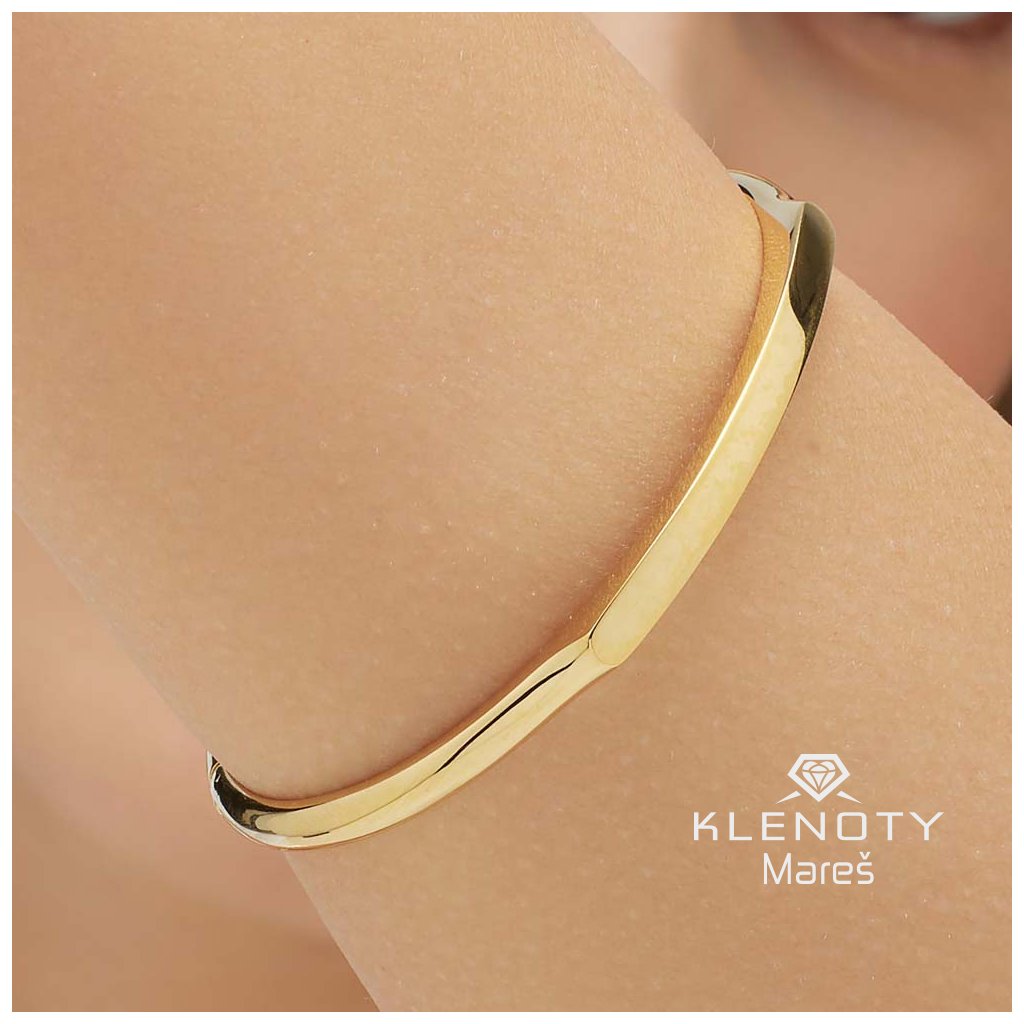 Pevný náramek v chirurgické oceli ve žluté povrchové úpravě.