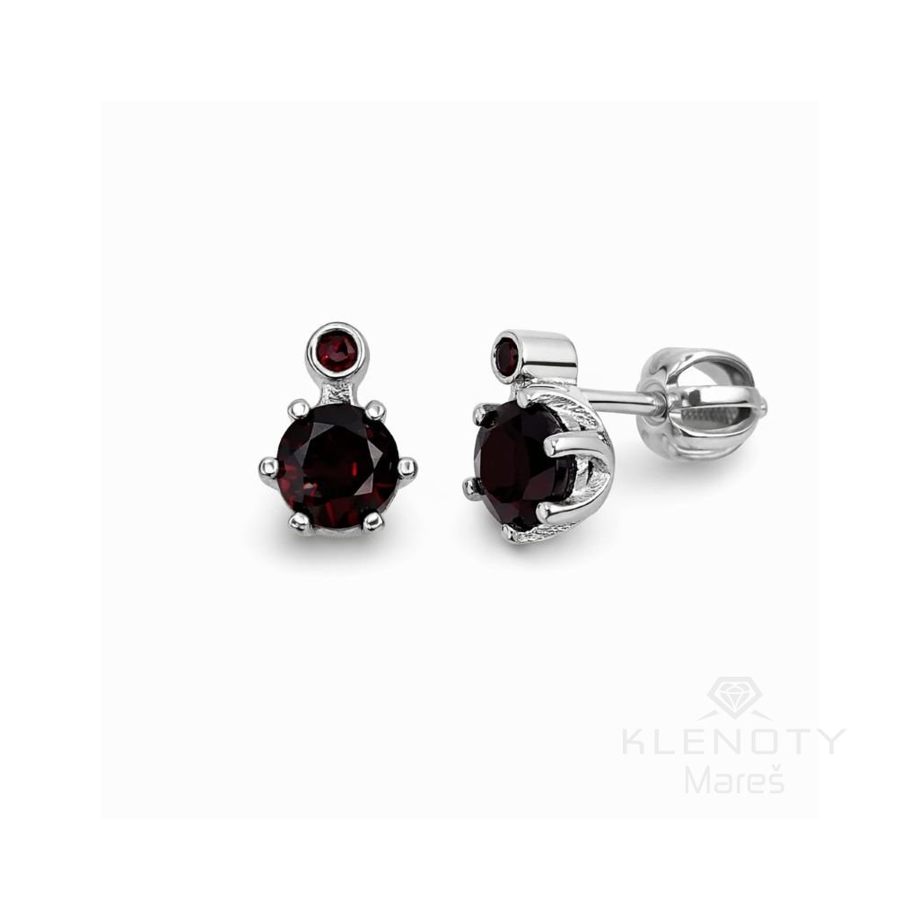 Elegantní stříbrné náušnice osázené Českým granátem na šroubkové zapínání.