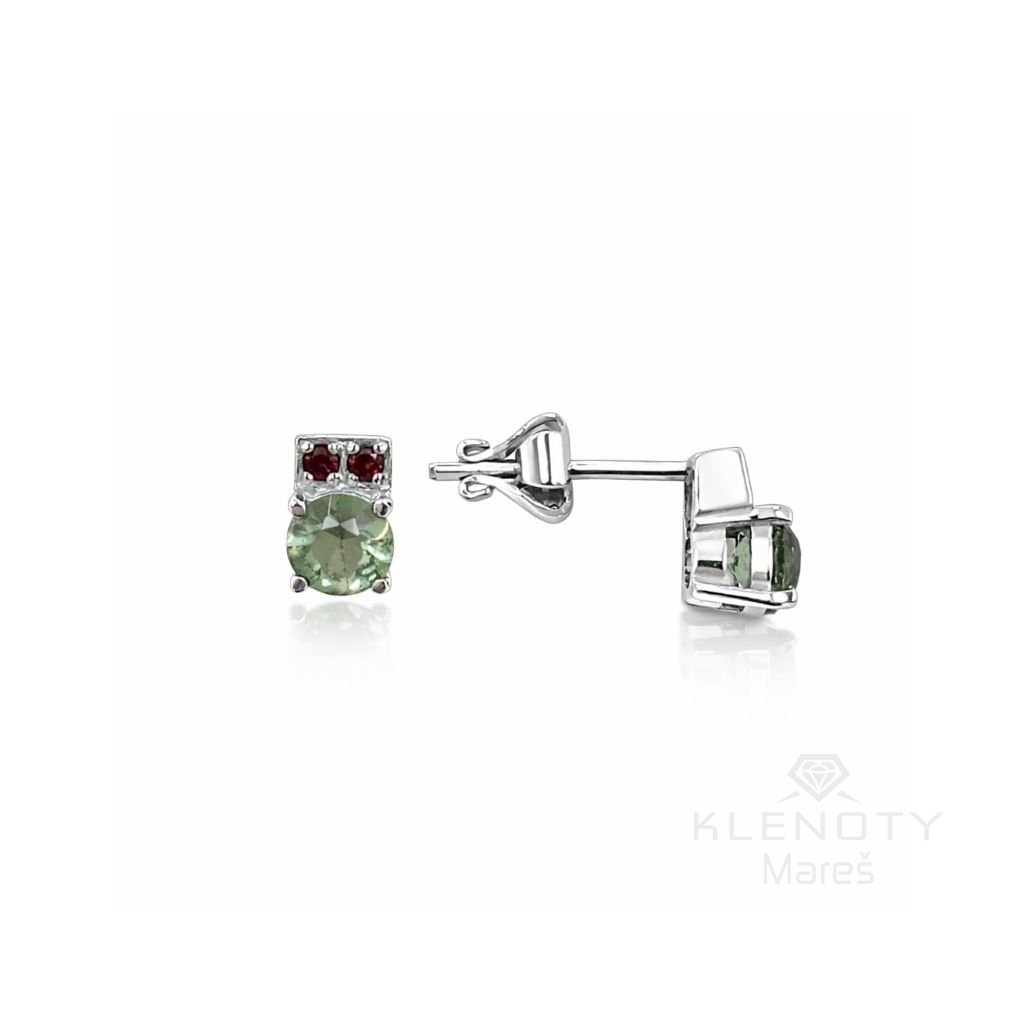 Stříbrné náušnice osázené Českým granátem a Vltavínem.