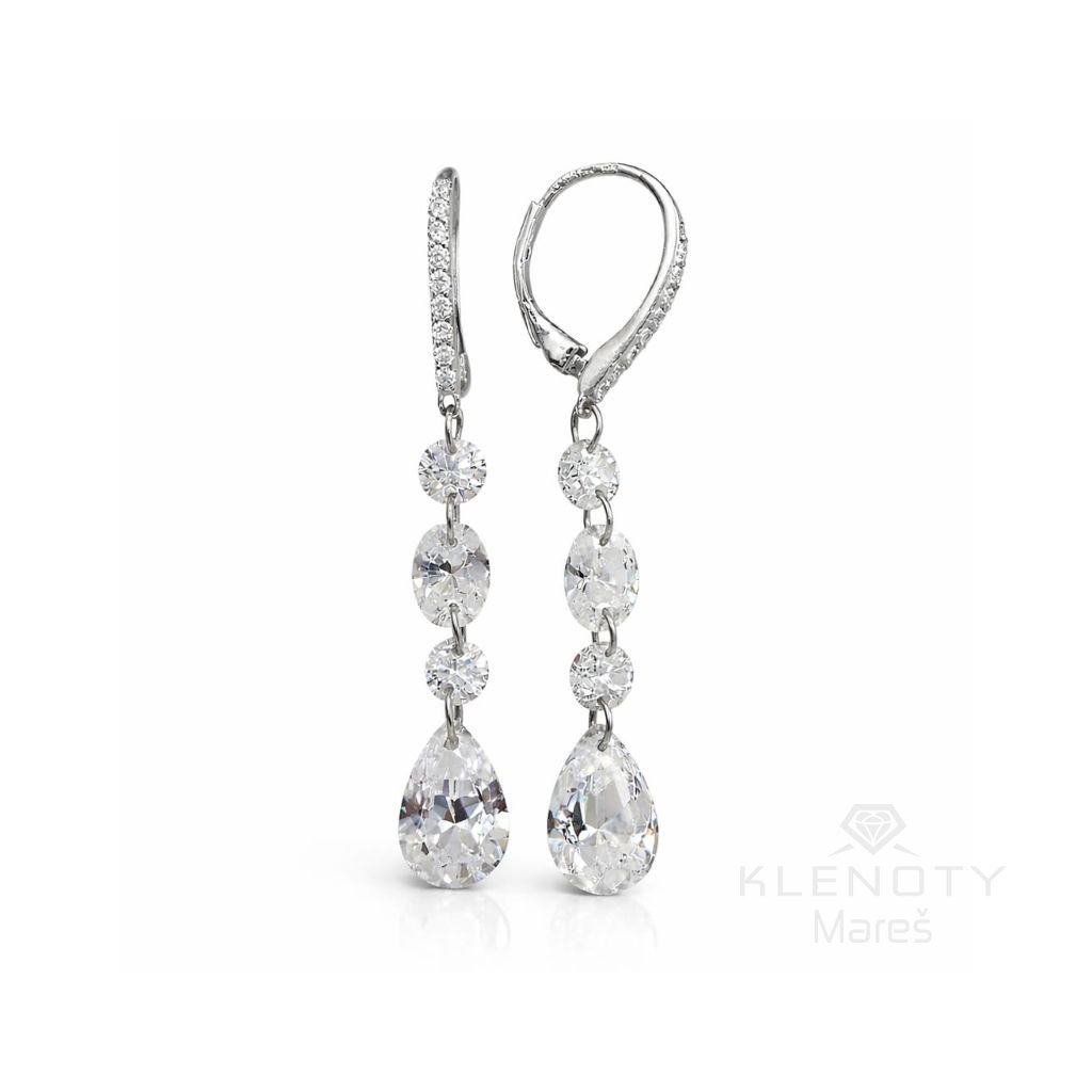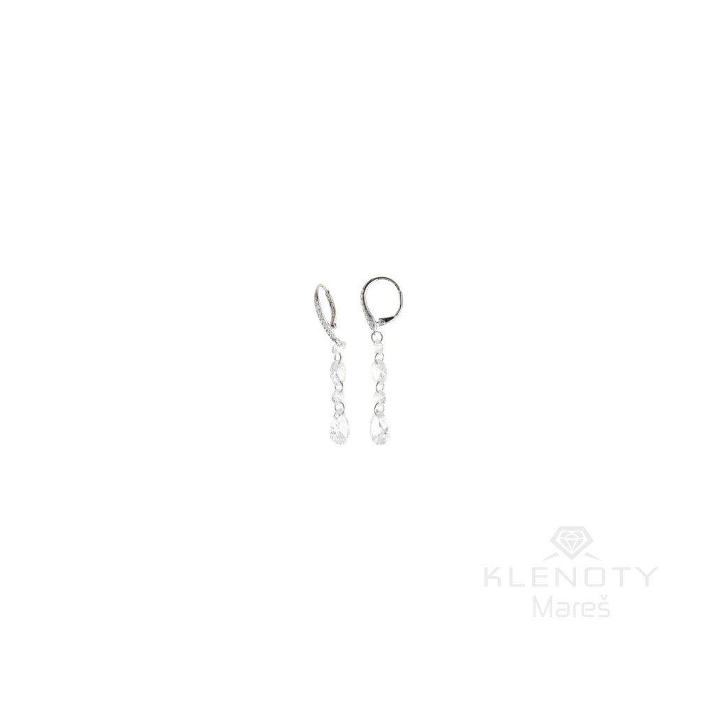 Stříbrné visací náušnice na patentové zapínání, zdobené visacím zirkonem.