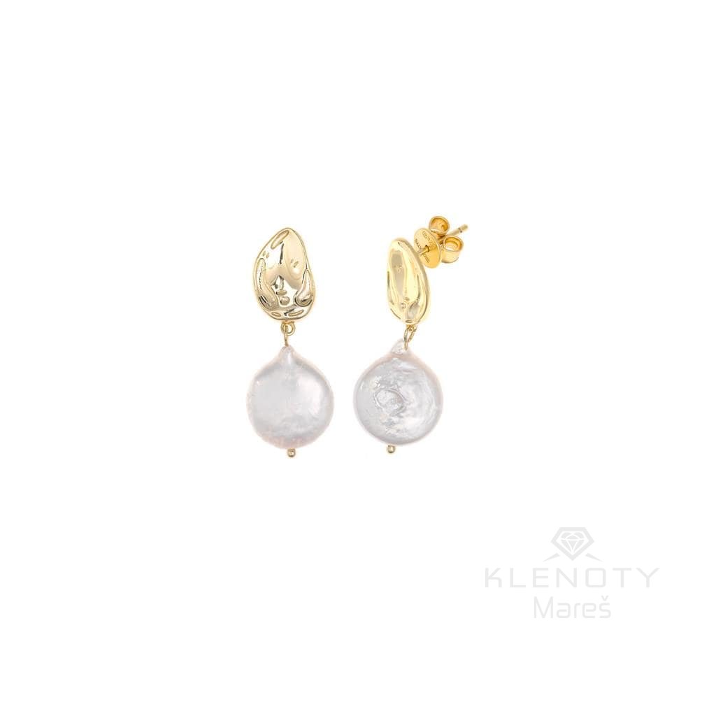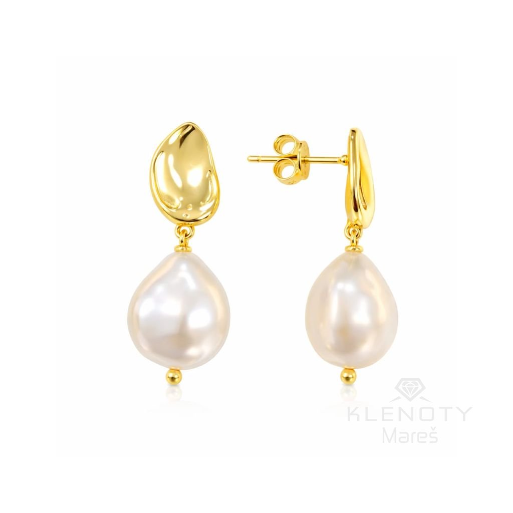 Stříbrné podlouhlé elegantní náušnice pozlacené 18ti karátovým zlatem na puzetové zapínání s perlou.