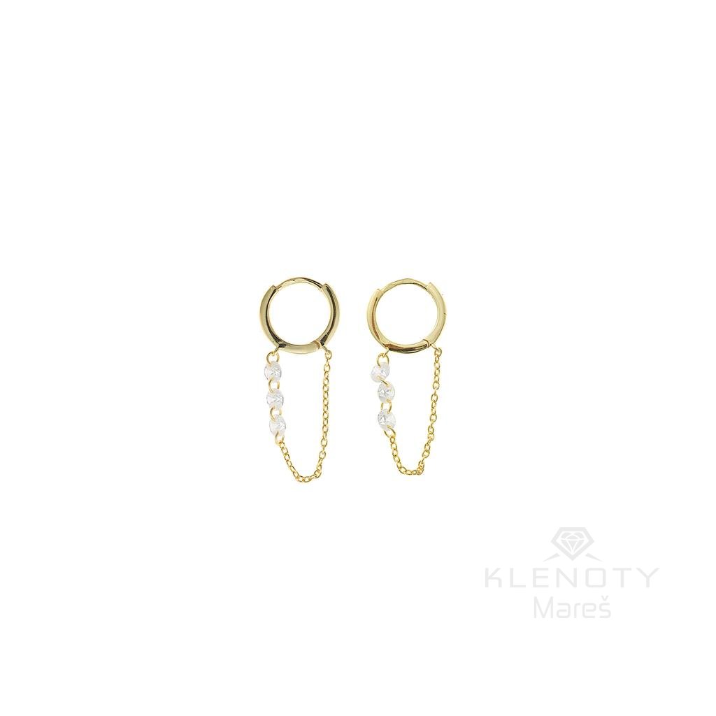 Elegantní stříbrné náušnice v 18ti karátovým zlatě zdobené krystaly na kruhové zapínání.