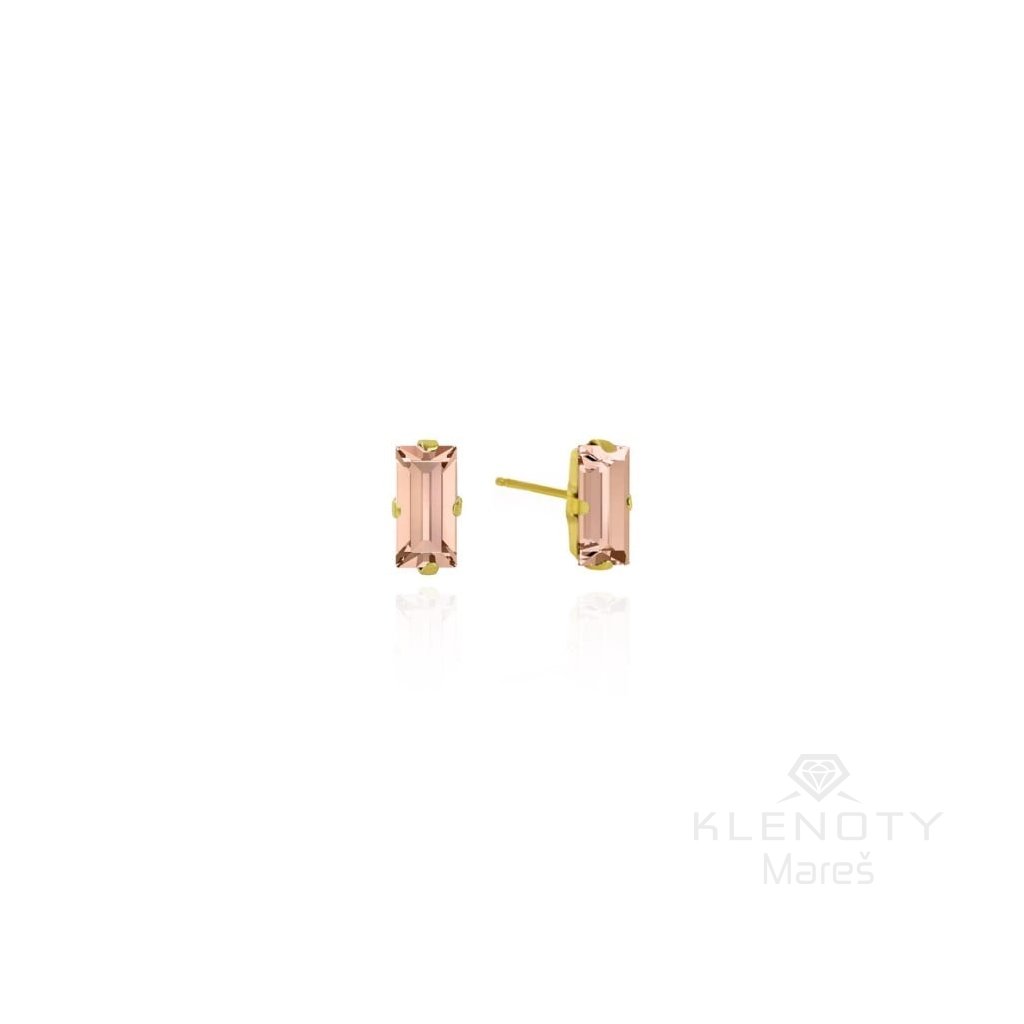 Stříbrné náušnice pozlacené 18ti karátovým zlatem na puzetové zapínání se světle růžovým zirkonem.