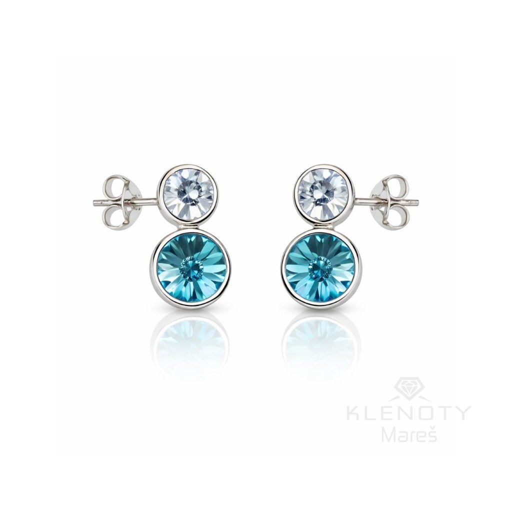 Stříbrné náušnice na puzetové zapínání s dvoumy kamínky v odstínech modré.