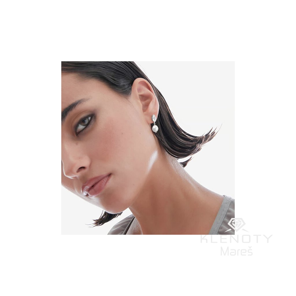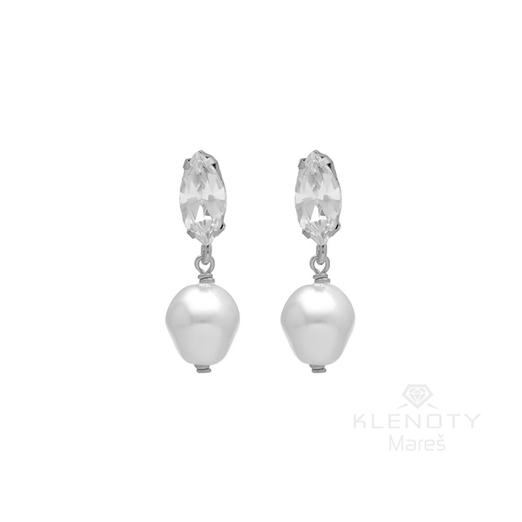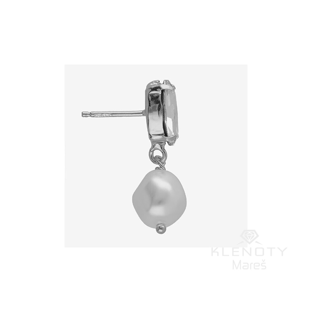 Stříbrné náušnice na puzetové zapínání zdobené oválným zirkonem a perlou.