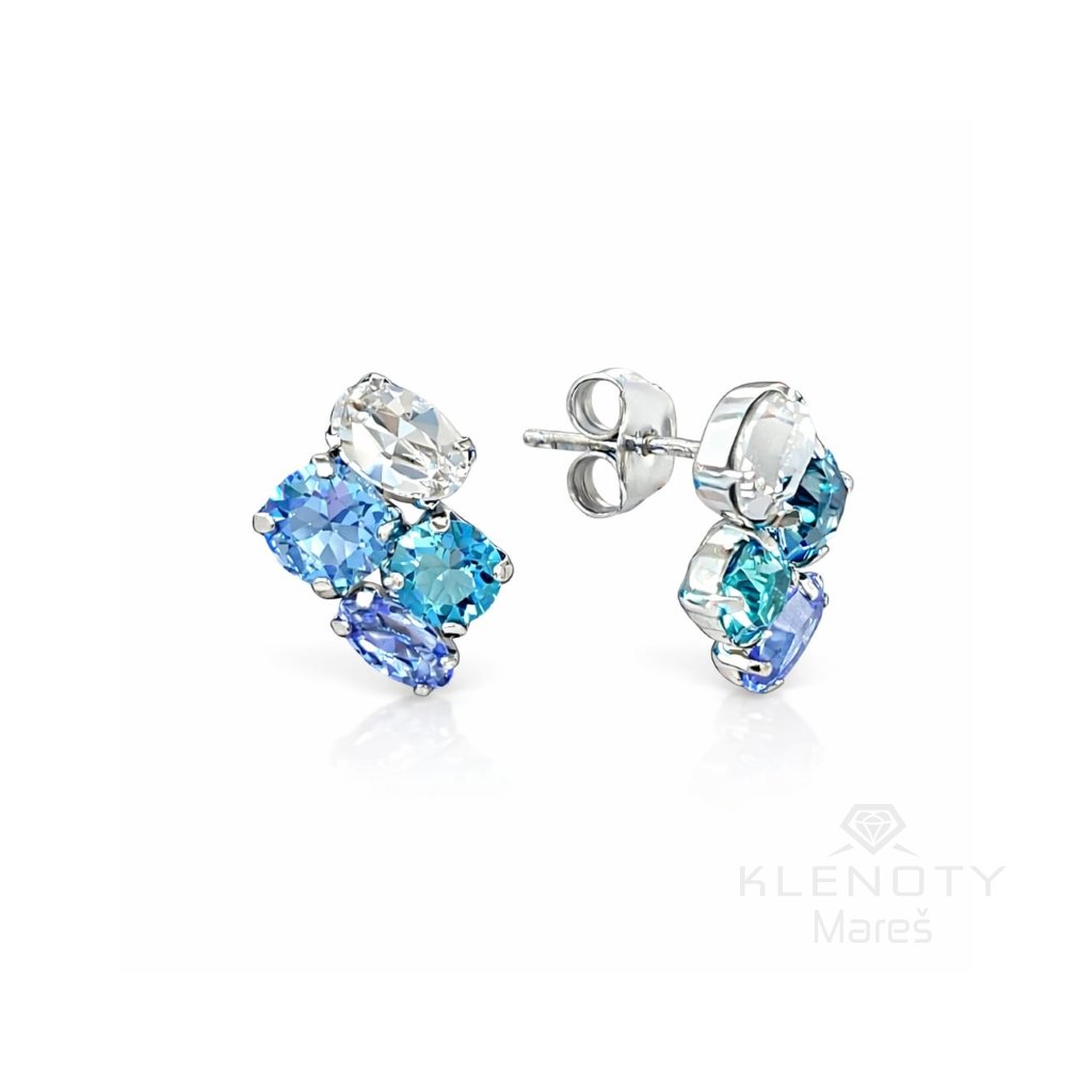 Stříbrné náušnice na puzetové zapínání s třpytivými zirkony v odstínu modré.