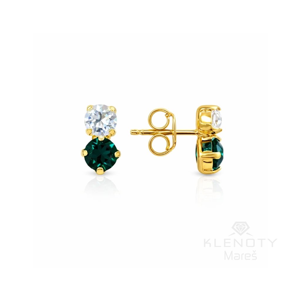 Stříbrné elegantní náušnice pozlacené 18ti karátovým zlatem na puzetové zapínání s třpytivými zirkony v odstínu zelené.
