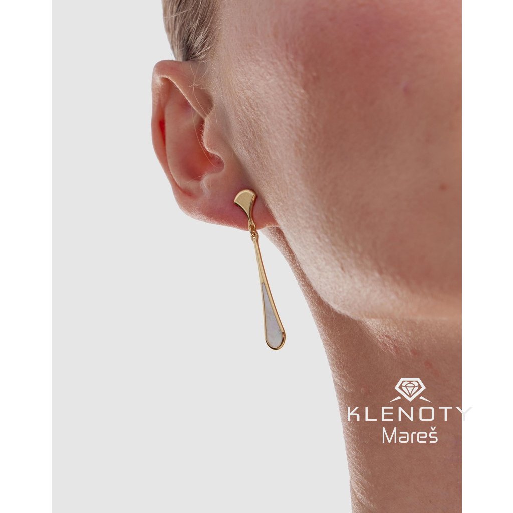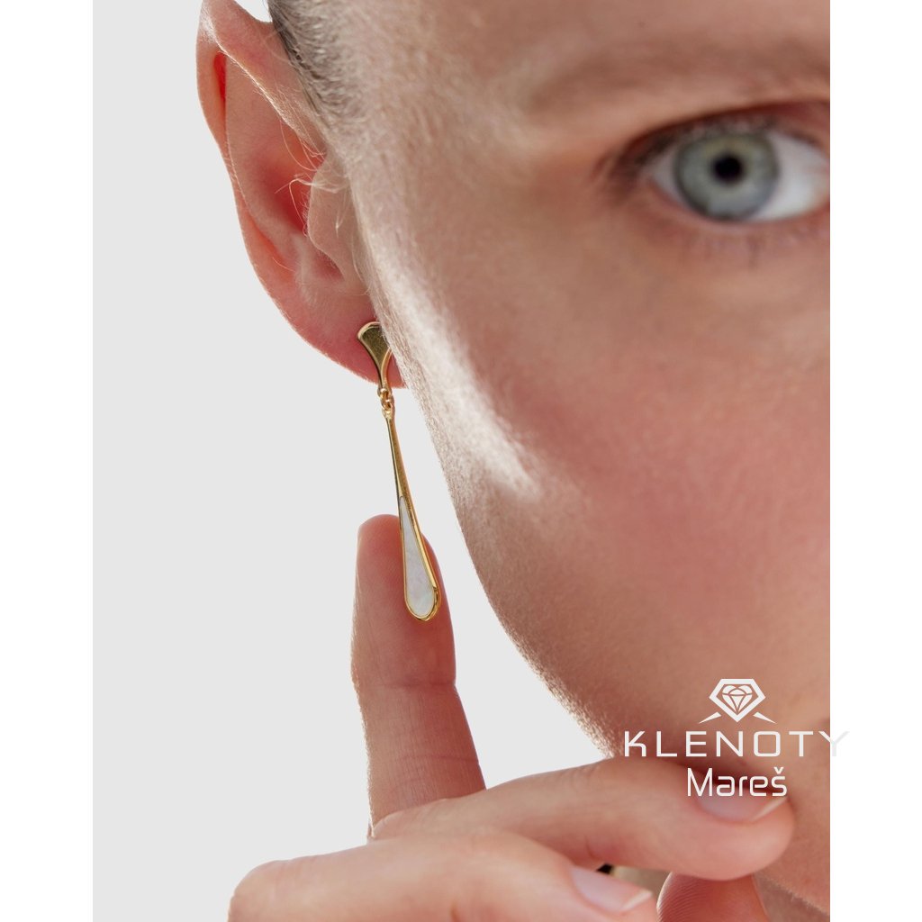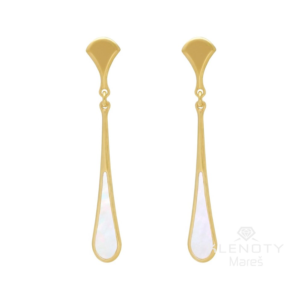 Stříbrné visací náušnice pozlacené 18ti karátovým zlatem na puzetové zapínání s perletí.