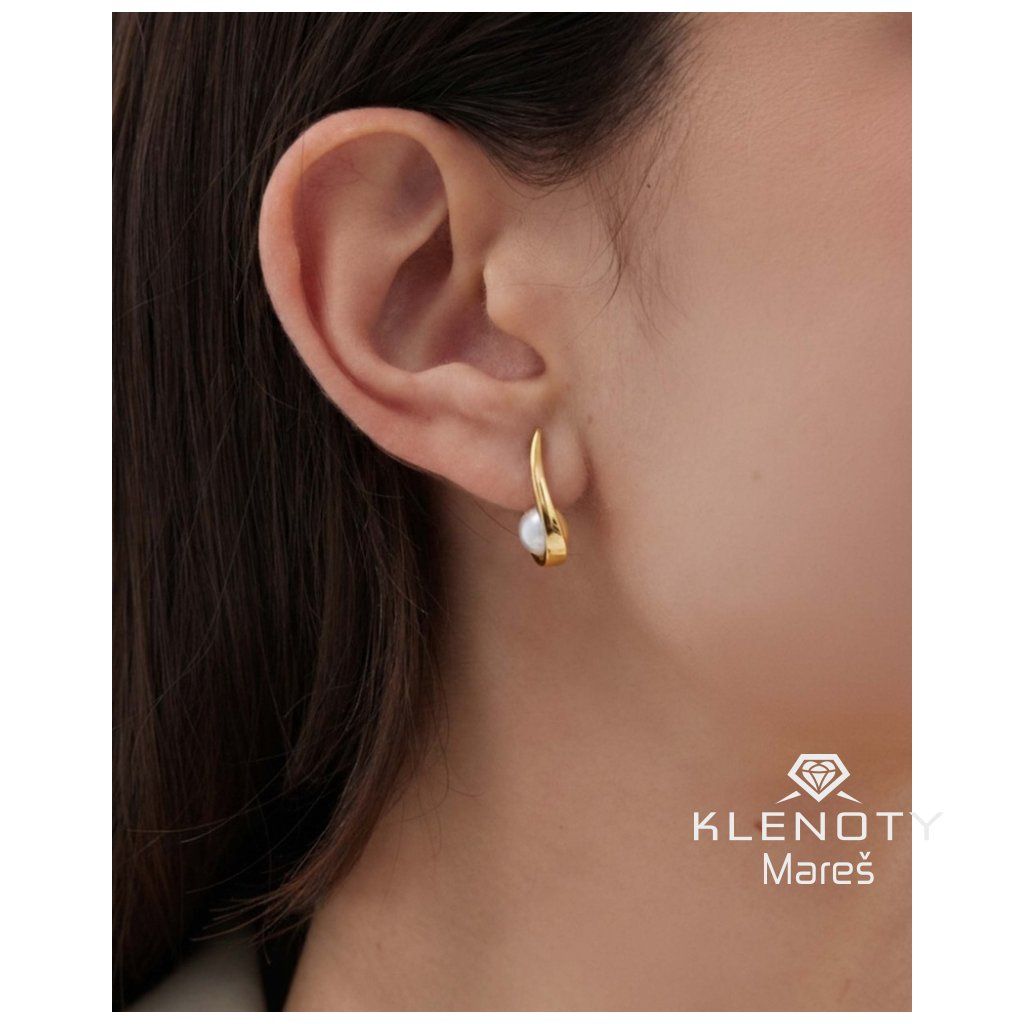 Jemný, protáhlý tvar kroužku elegantně objímá zářivou bílou perlu, která vypadá, jako by se uvnitř zlatého rámu vznášela. Francouzské zapínání zajišťuje bezpečné a snadné nasazování i maximální pohodlí při celodenním nošení.