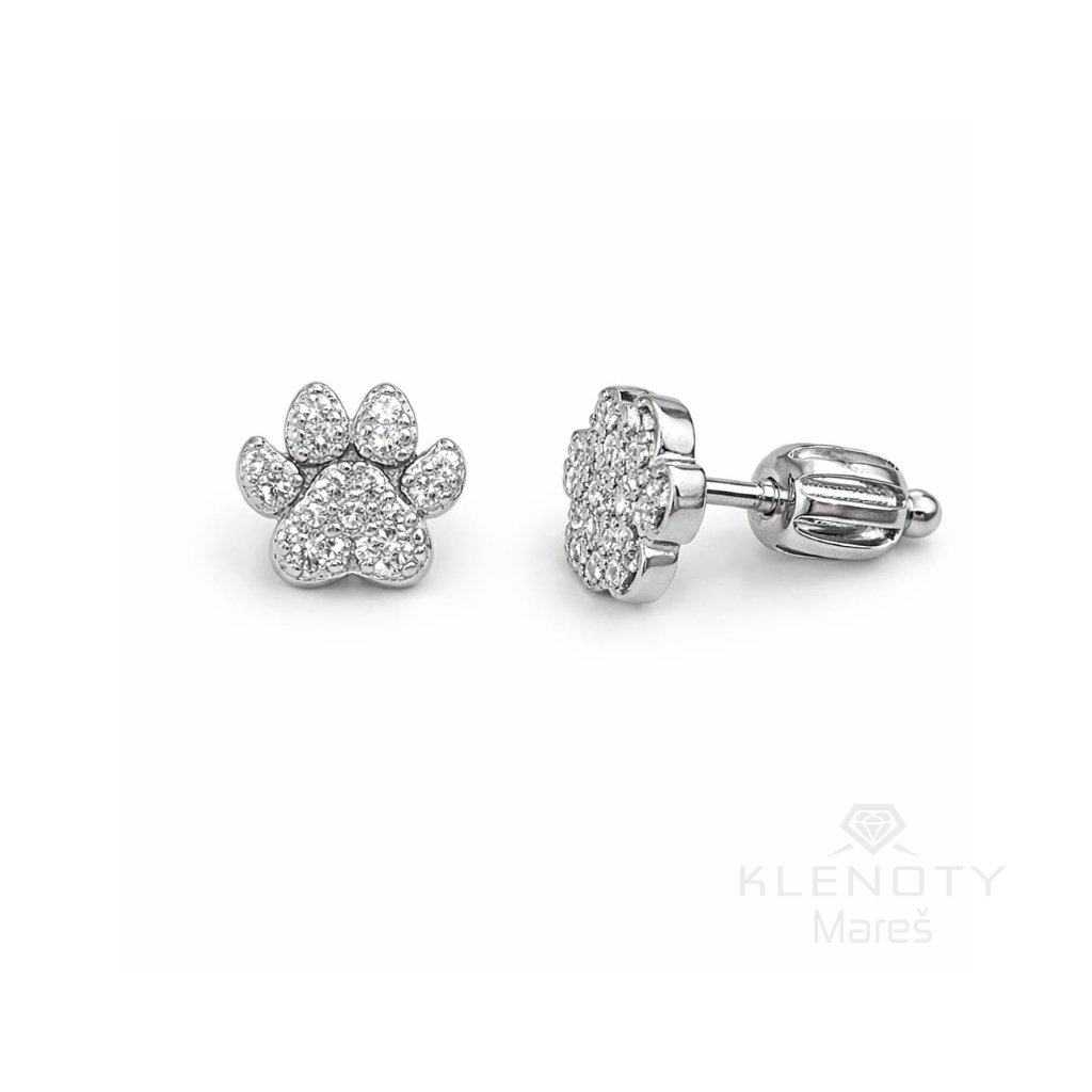 Stříbrné náušnice ve tvaru tlapky jsou ideálním doplňkem pro každou milovnici zvířat. Motiv tlapky je doplněn čirými zirkony, které náušnicím dodávají oslnivý třpyt.