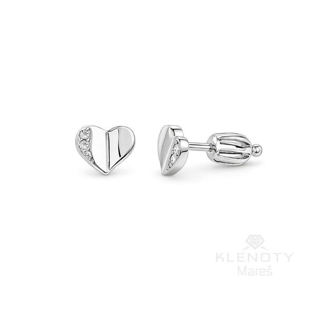 Stříbrné náušnice na šroubkové zapínání s motivem srdíčka osázené třpytivými zirkony.