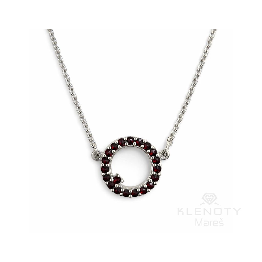 Stříbrný náhrdelník osázený Českým granátem v motivu kolečka.