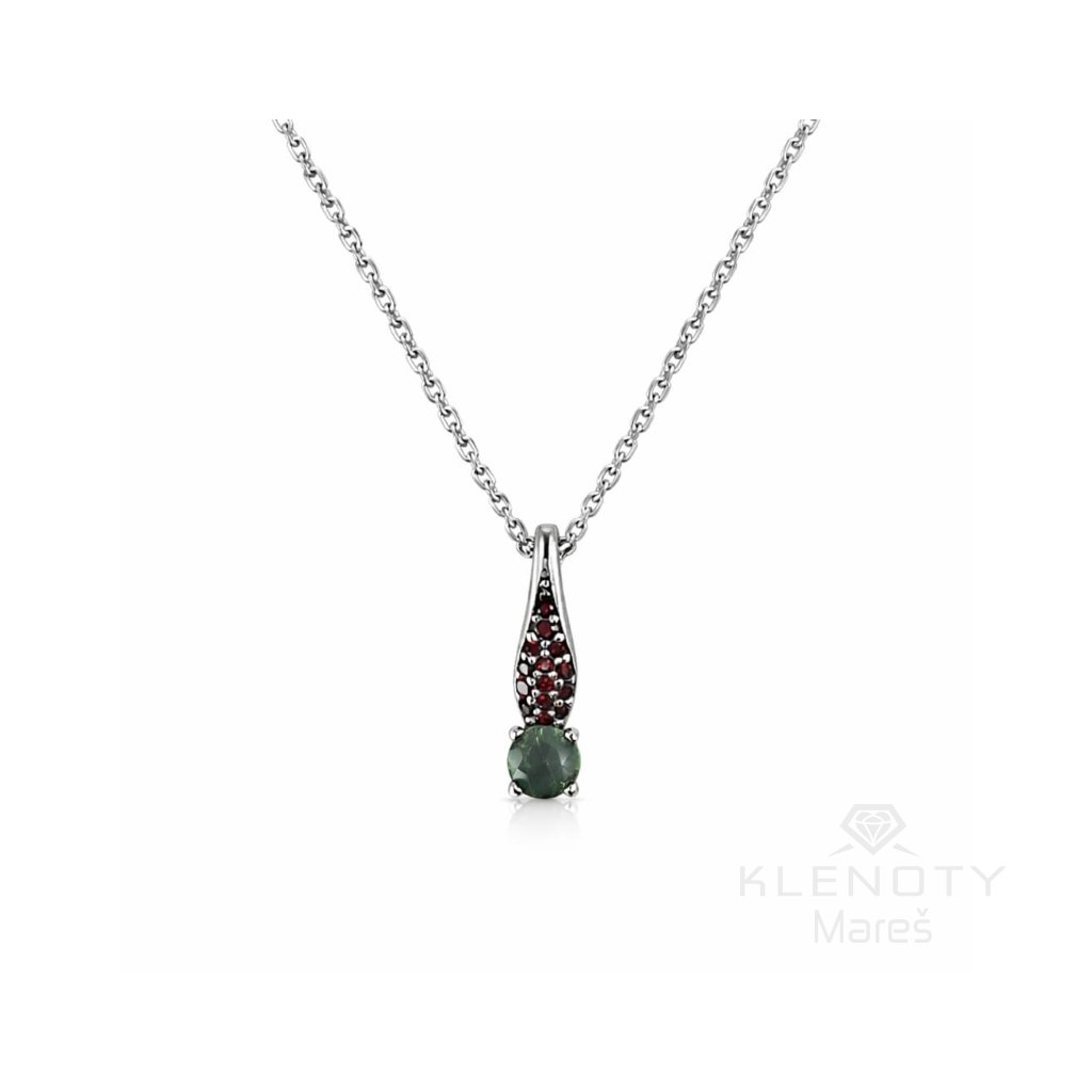 Stříbrný náhrdelník osázený Českým granátem a Vltavínem.