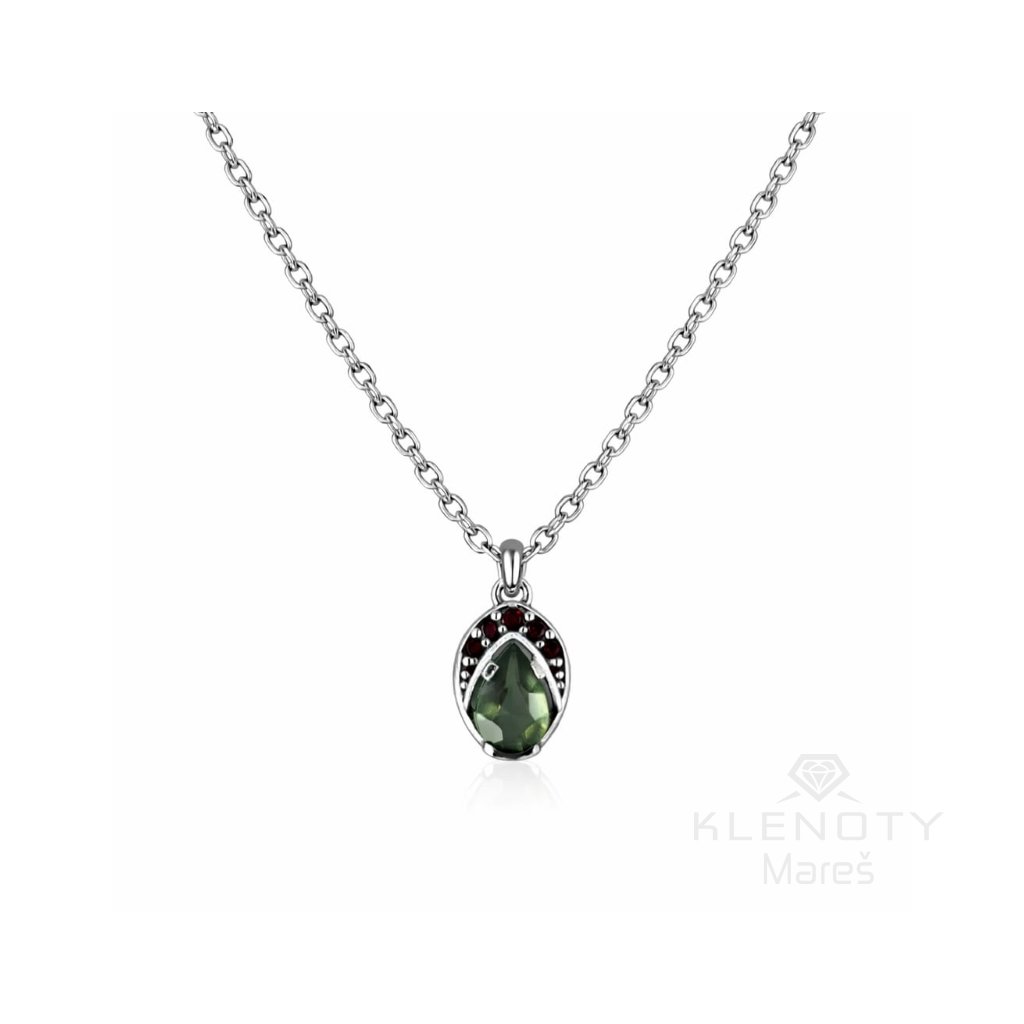 Stříbrný náhrdelník osázený Českým granátem a Vltavínem.