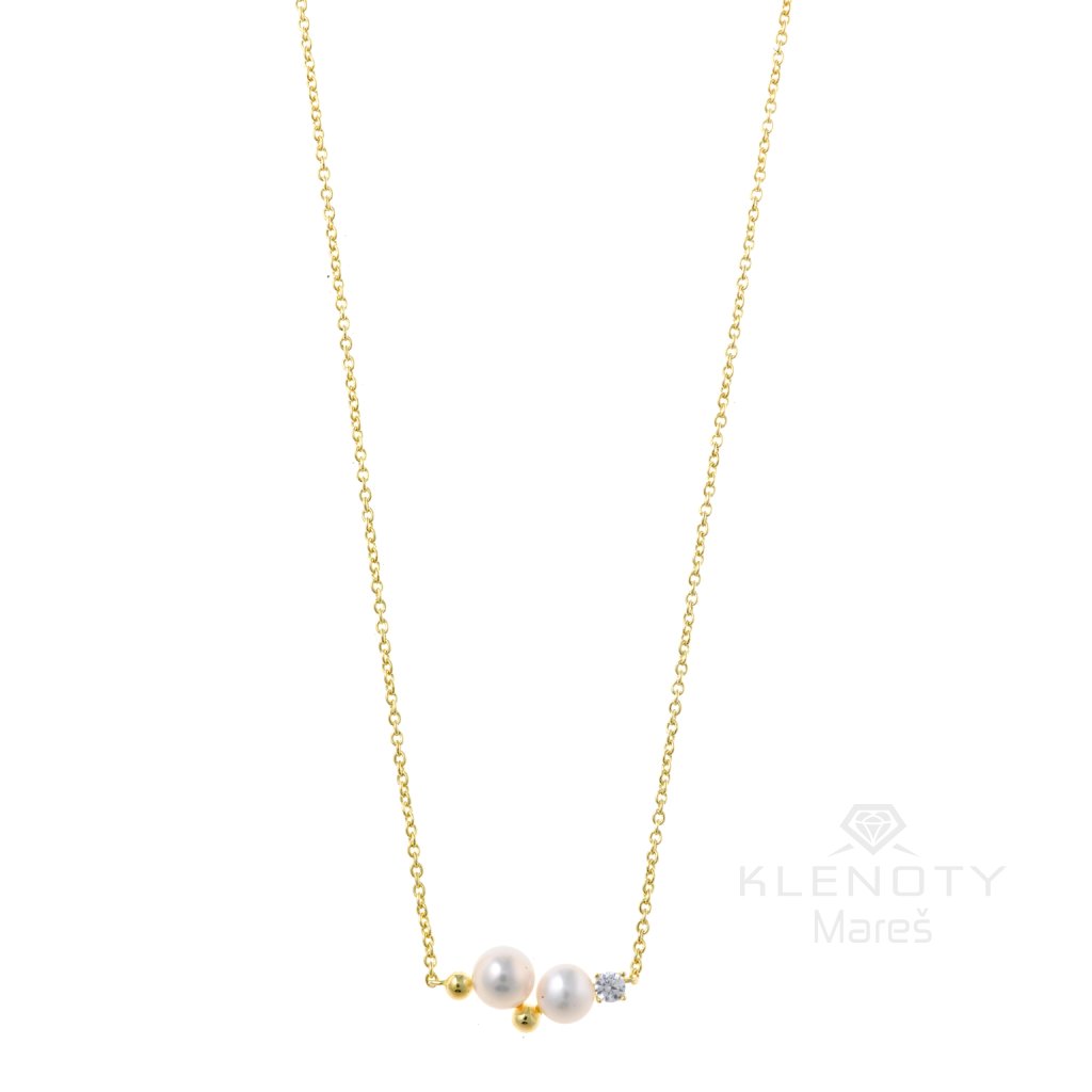 Stříbrný elegantní náhrdelník pozlacený 18ti karátovým zlatem zdoben perličky.