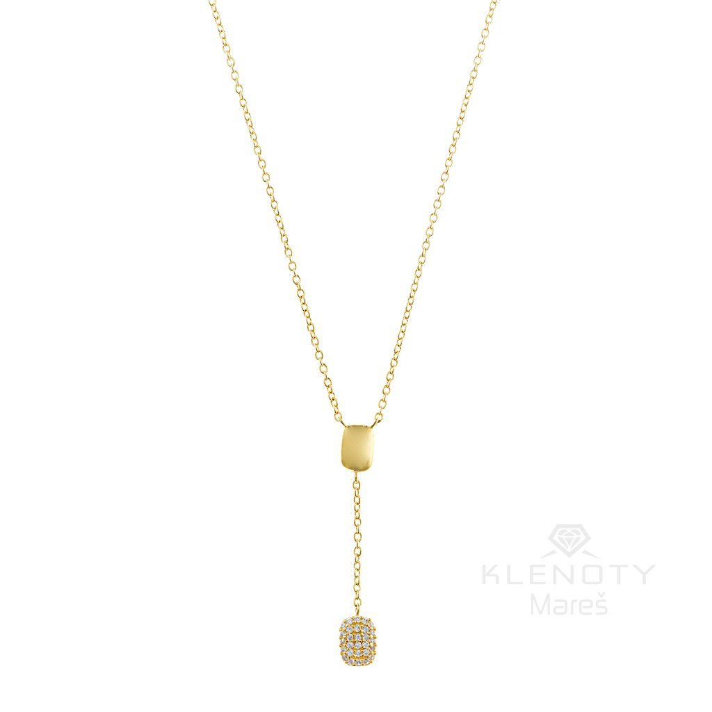 Stříbrný elegantní náhrdelník pozlacený 18ti karátovým zlatem s třpytivými zirkony.