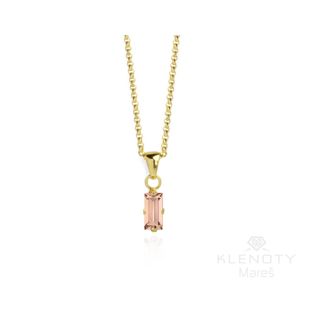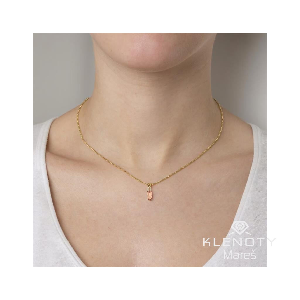 Stříbrný náhrdelník pozlacen 18ti karátovým zlatem zdoben světle růžovým kamínkem.