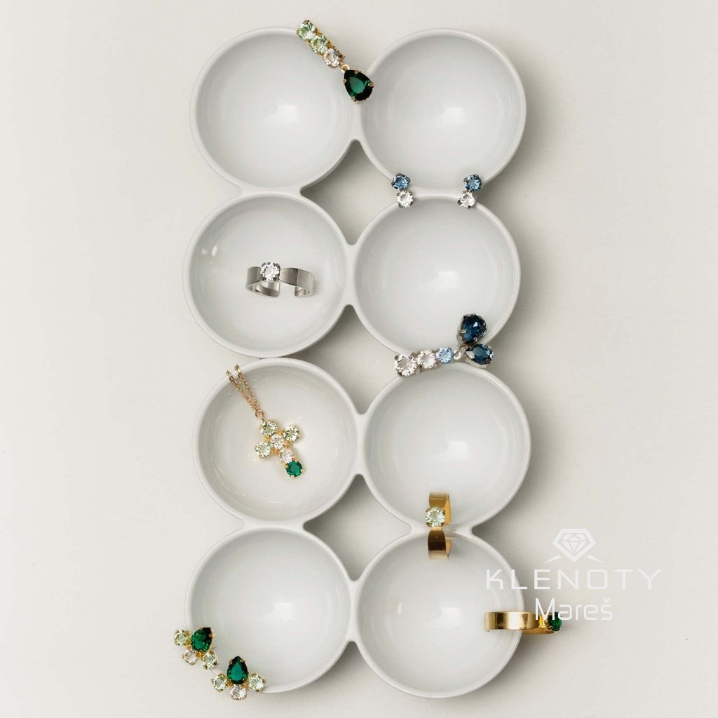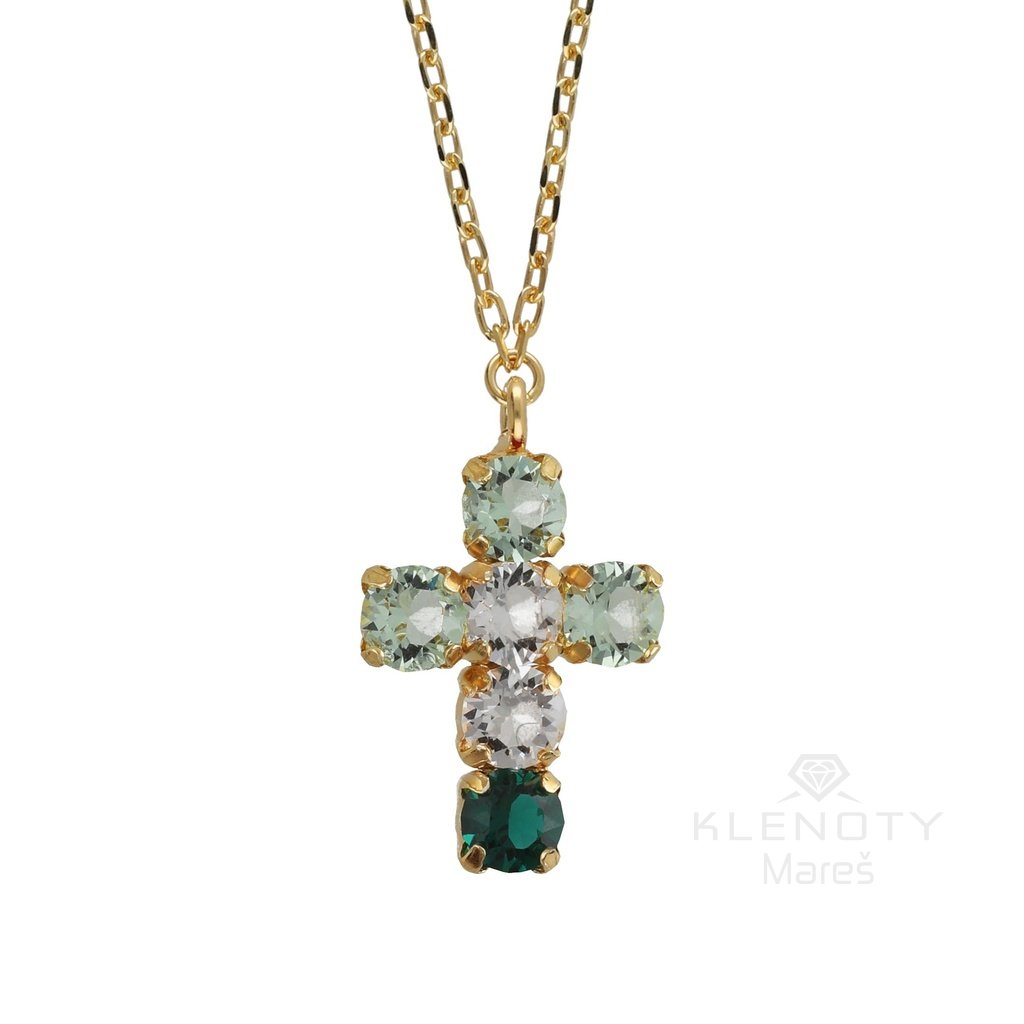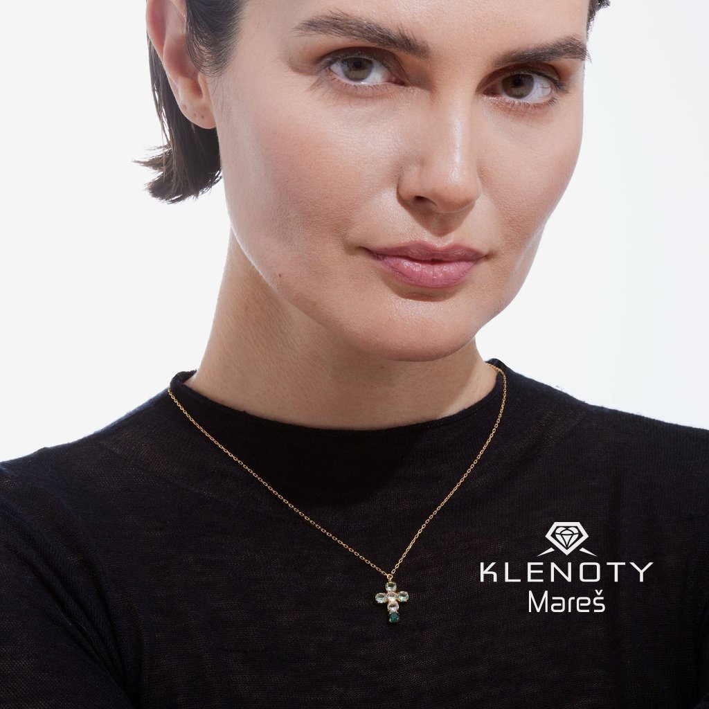 Stříbrný elegantní pozlacený náhrdelník ve 18ti karátovým zlatě v motivu kříž v odstínech zelené.