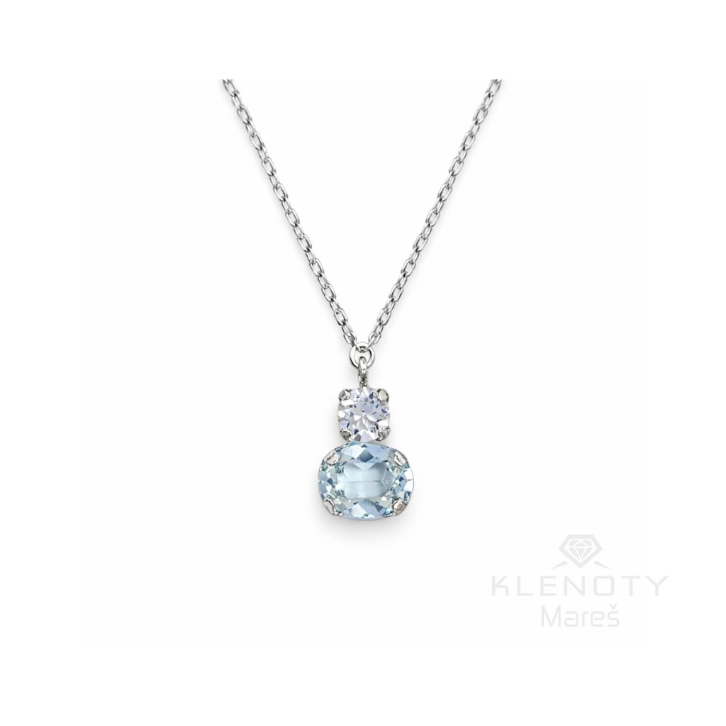 Stříbrný elegantní náhrdelník dva kamínky v odstínech modré.