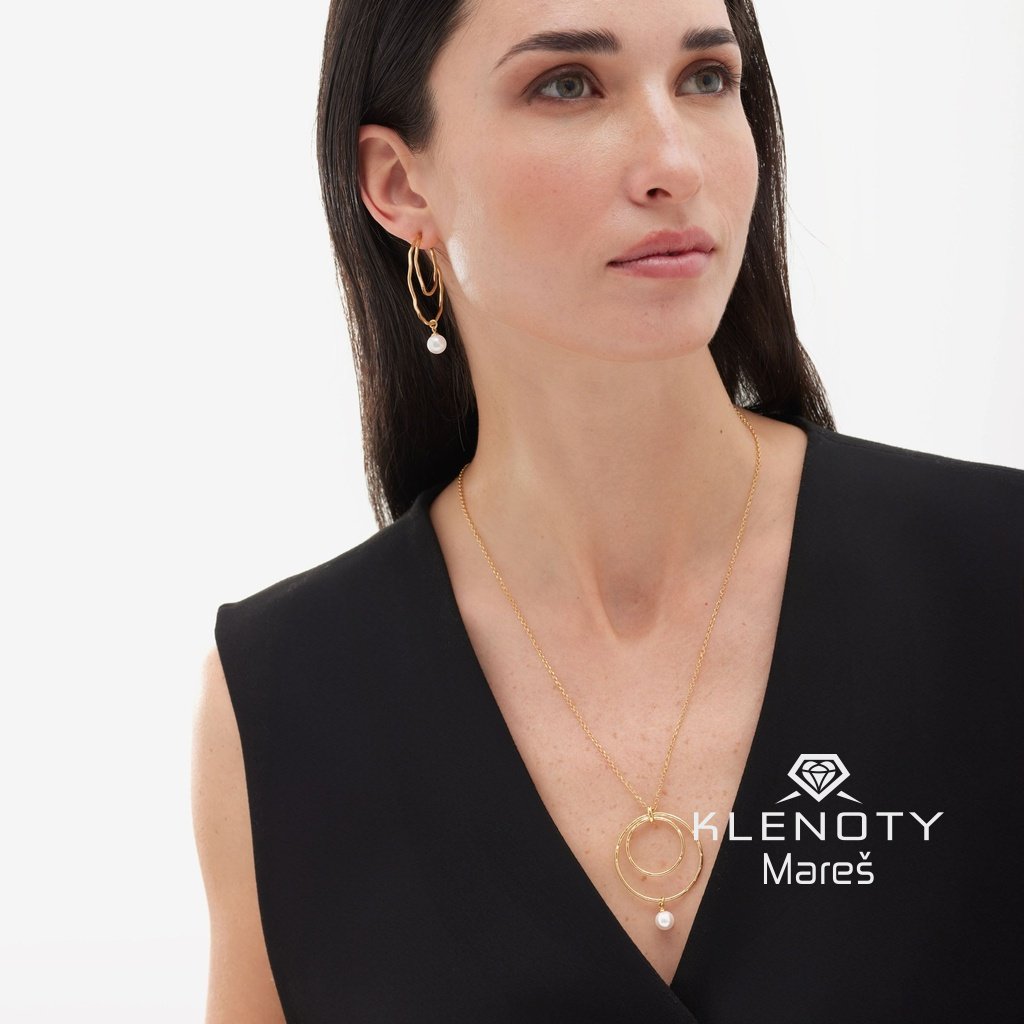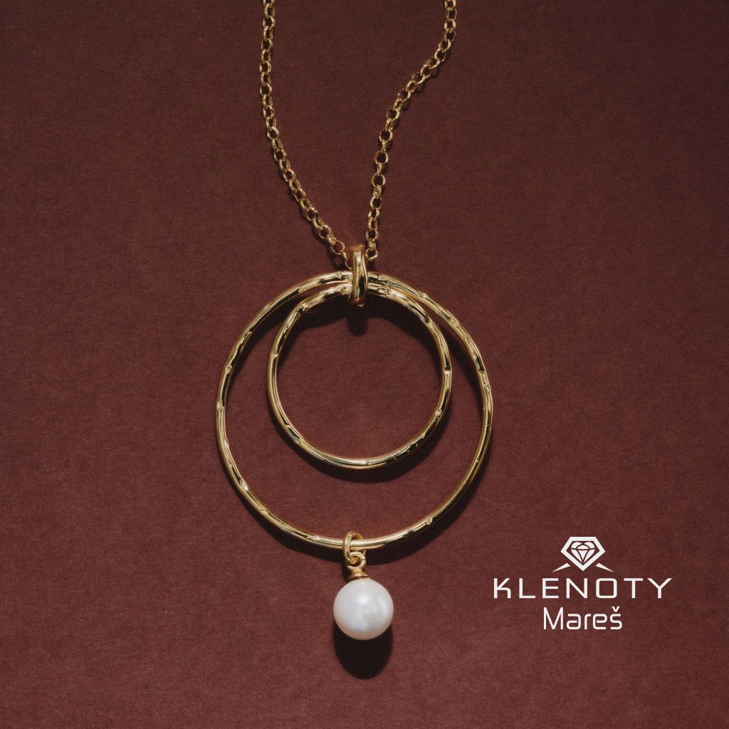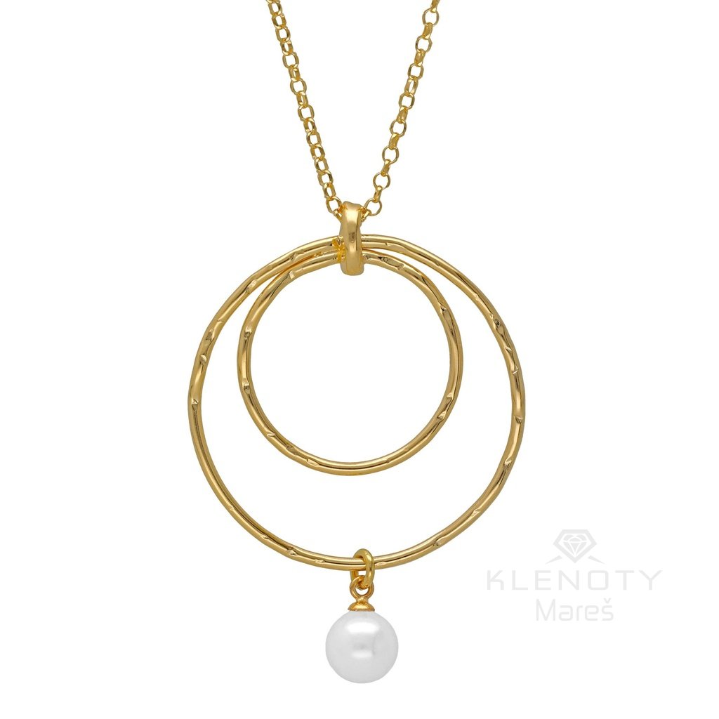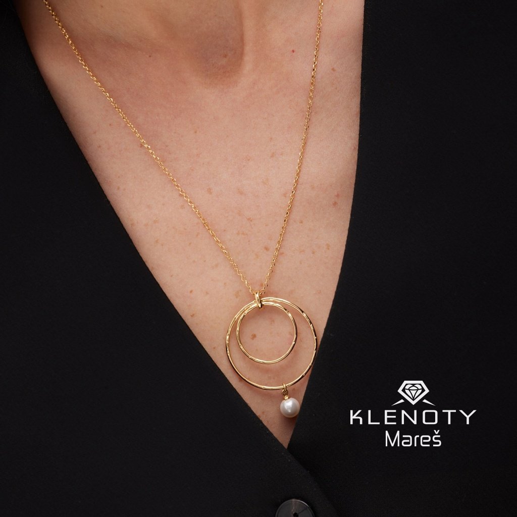 Stříbrný extravagantní pozlacený náhrdelník v 18ti karátovým zlatě zdoben perlou.