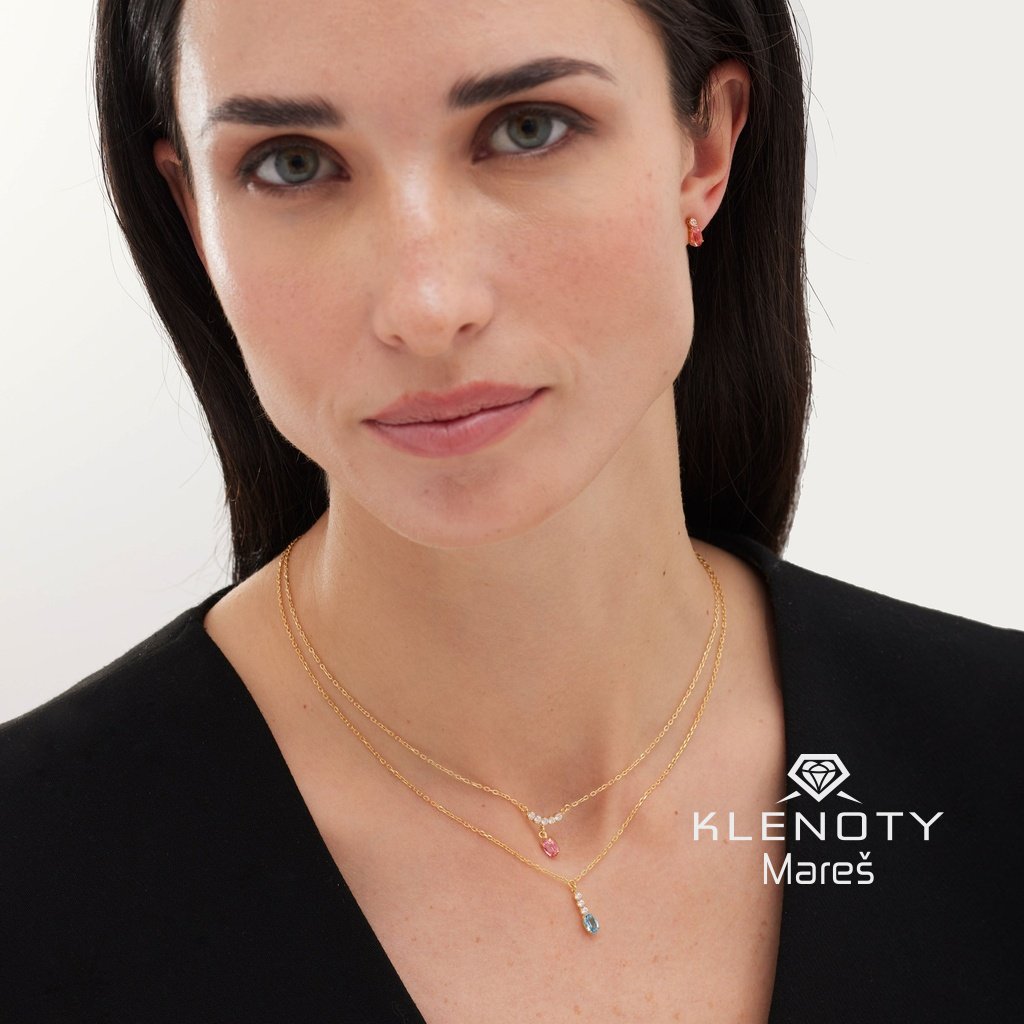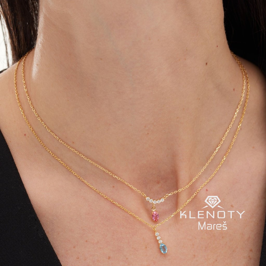 Stříbrný elegantní pozlacený náhrdelník ve 18ti karátovým zlatě se třpytivými zirkony.