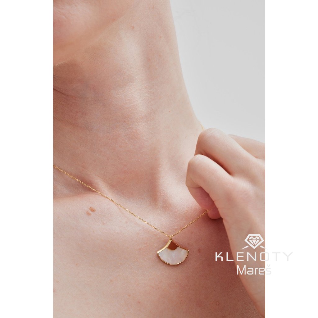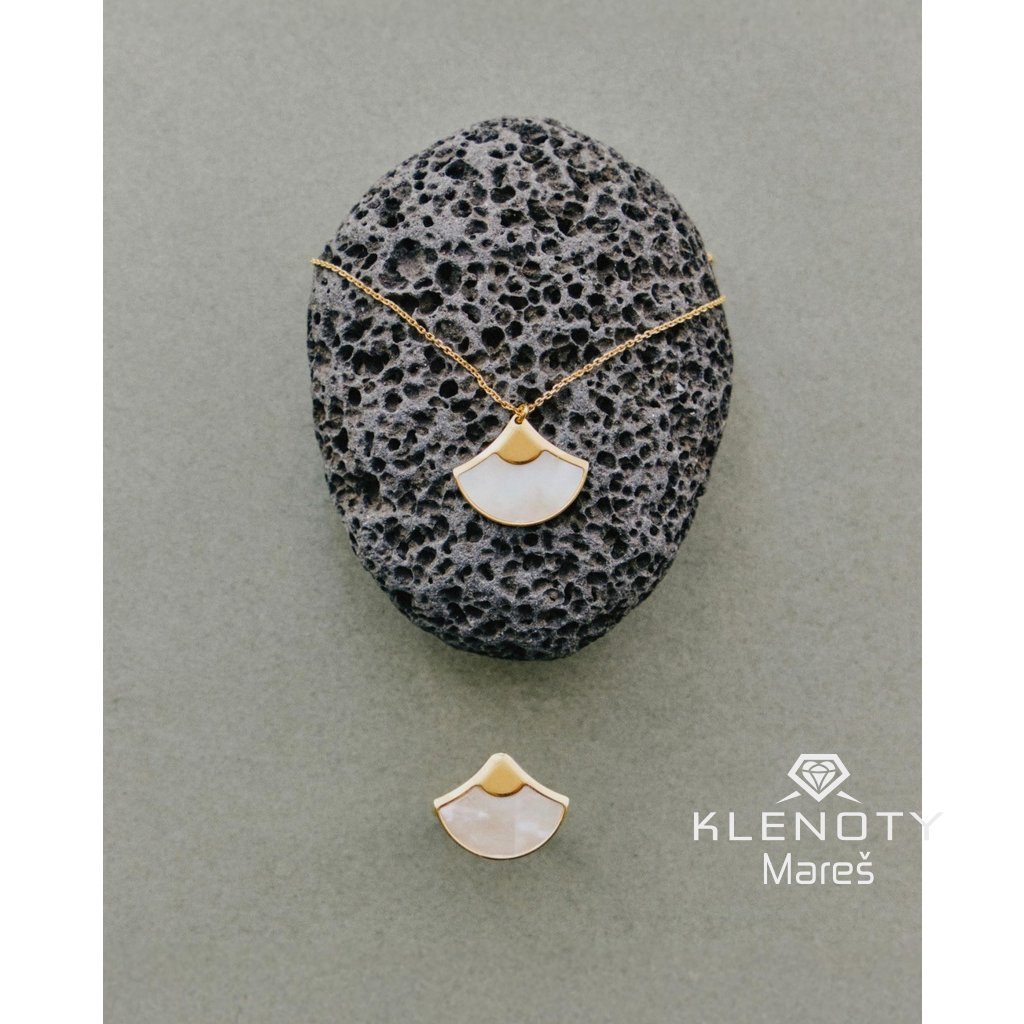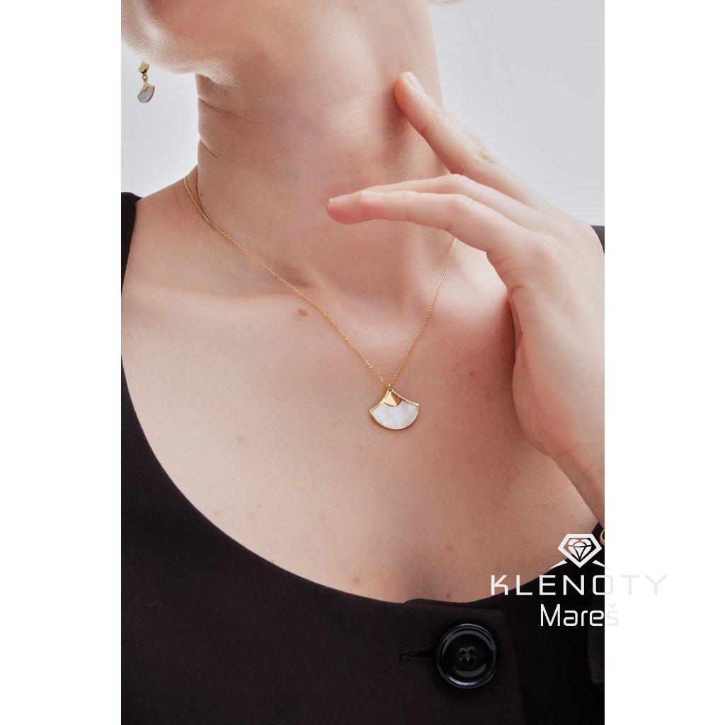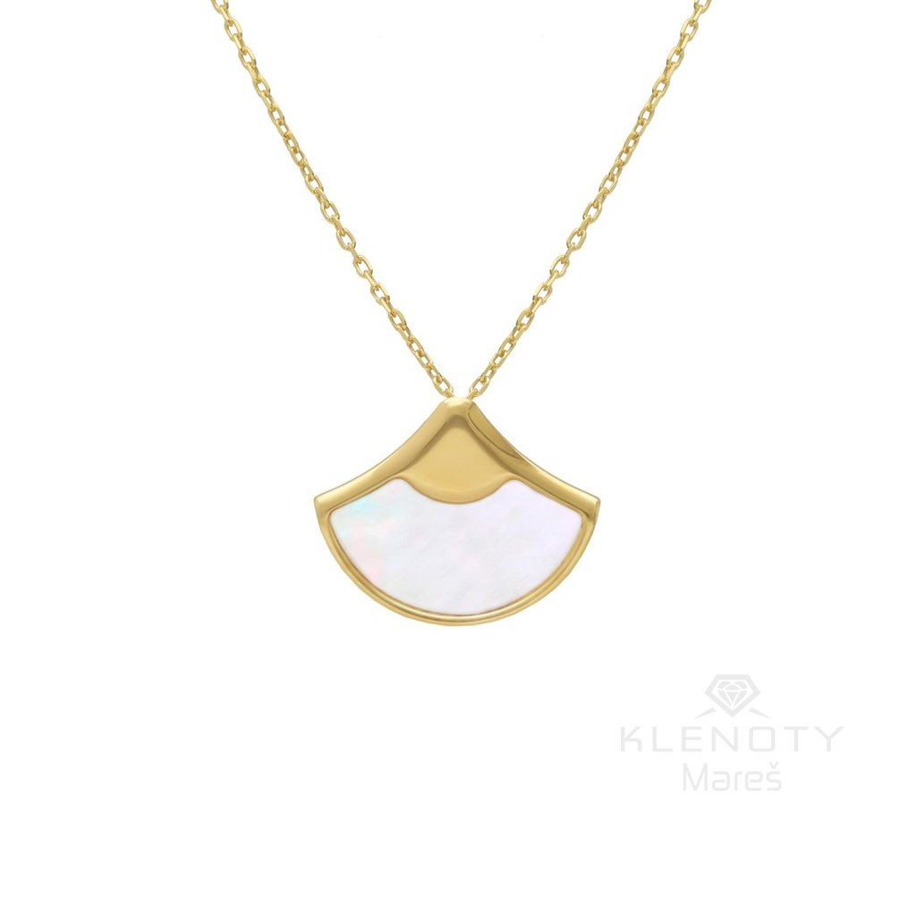 Stříbrný elegantní pozlacený náhrdelník v 18ti karátovým zlatě v motivu mušle s perletí.