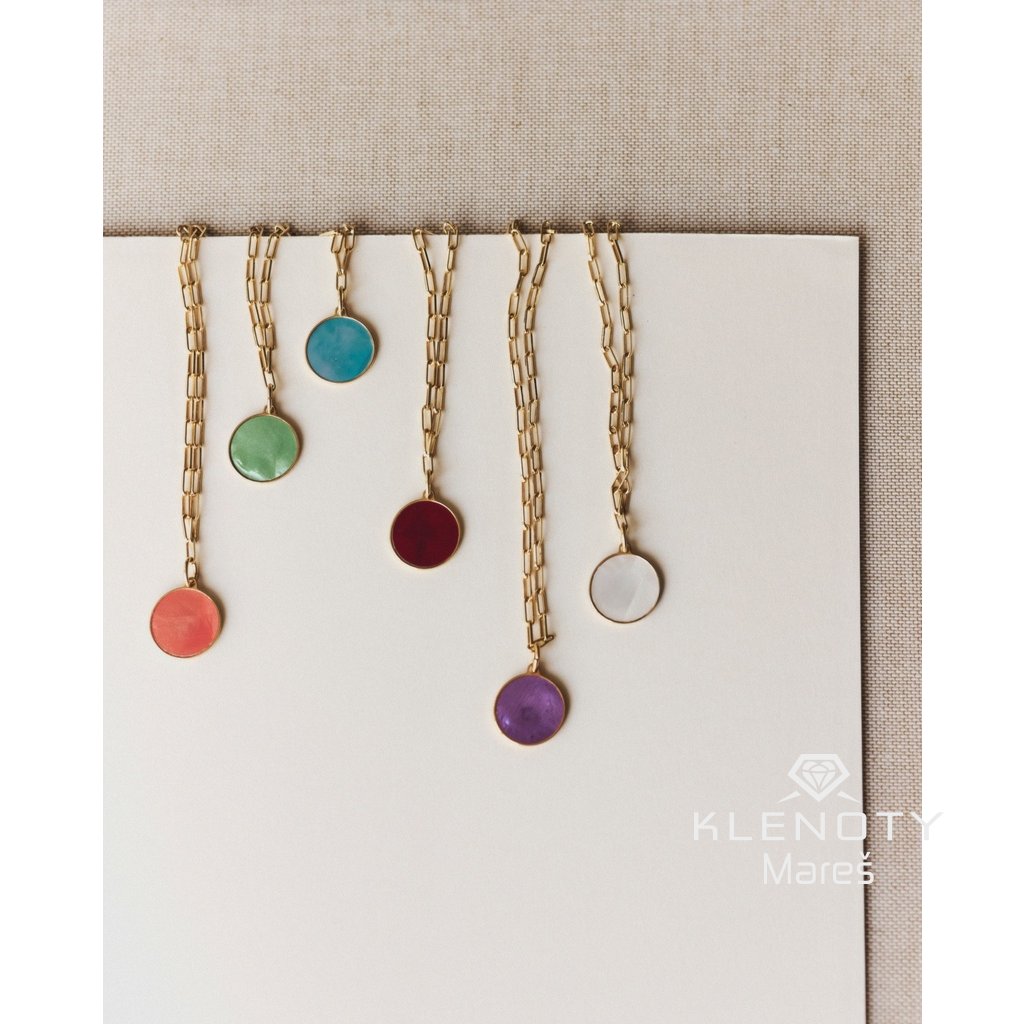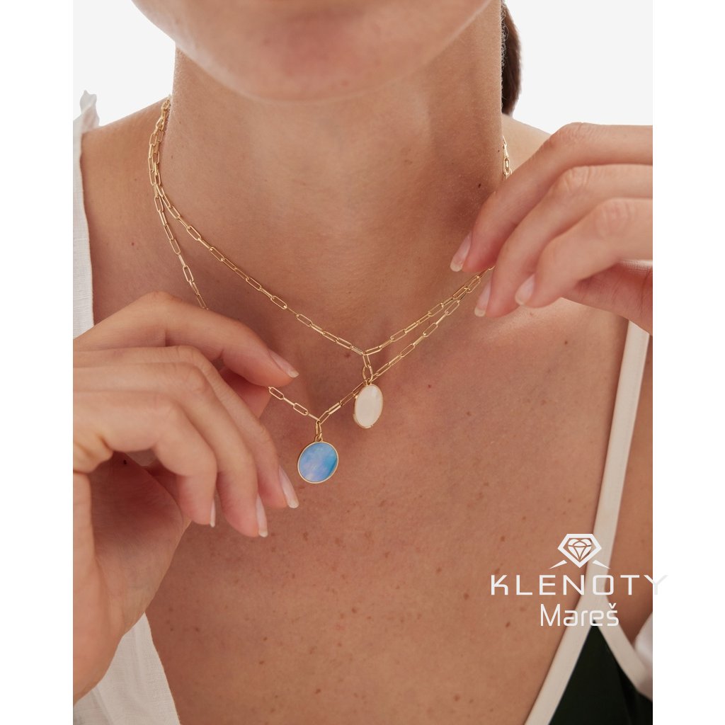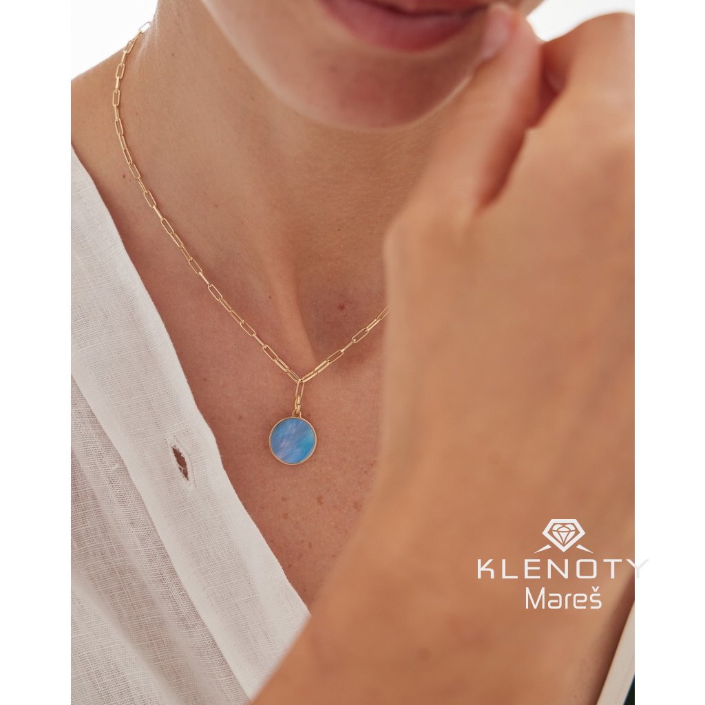 Stříbrný pozlacený náhrdelník v 18ti karátovým zlatě s modrou perletí.
