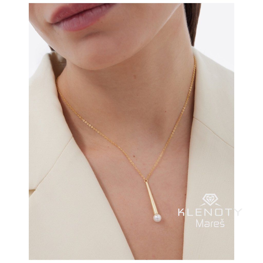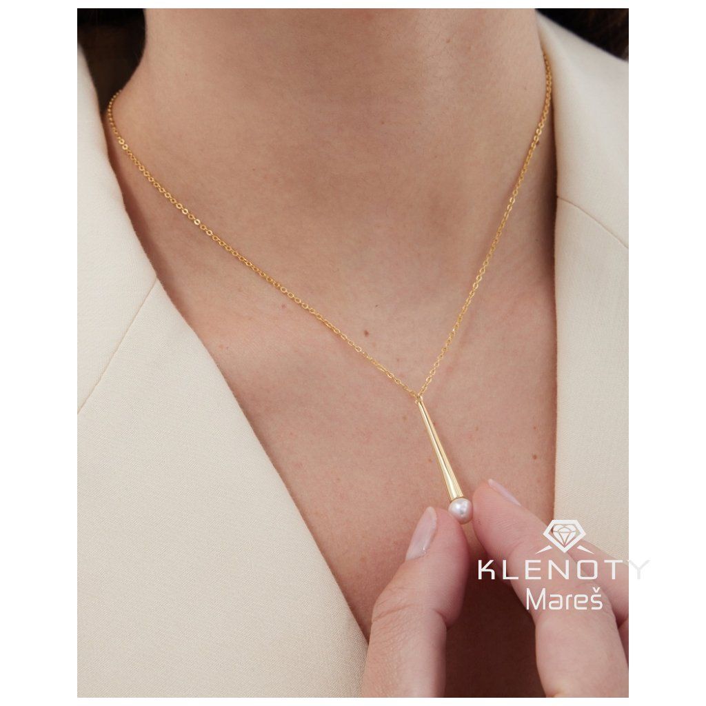Dopřejte si šperk, který v sobě snoubí moderní čistotu tvarů s klasickým půvabem přírodní perly. Tento náhrdelník s vertikálním přívěskem je navržen tak, aby opticky prodloužil linii krku a dodal vašemu outfitu punc sofistikovanosti a jemného luxusu.
