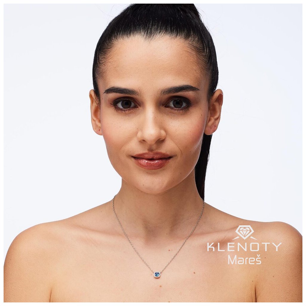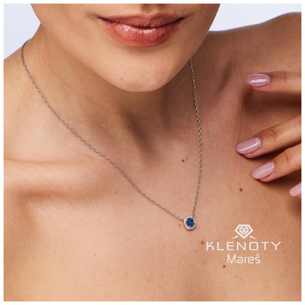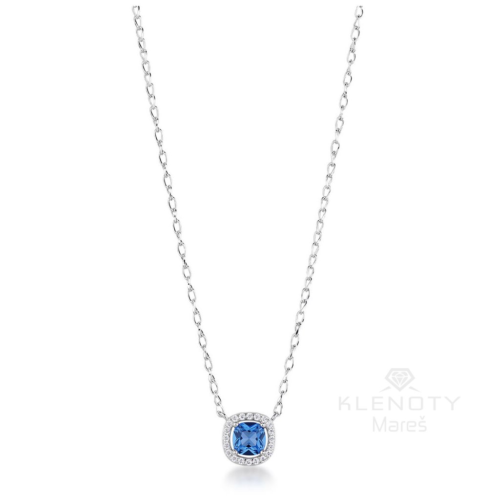 Slušivý stříbrný náhrdelník ozdobený čirým a modrými kubickými zirkony, vytváří jemný a moderní vzhled.