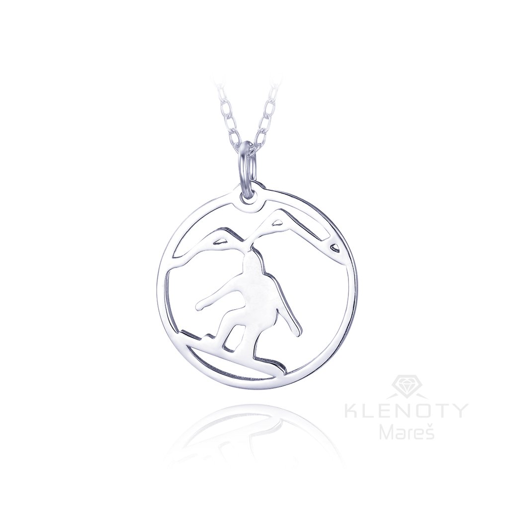Stříbrný náhrdelník se snowbordistou.