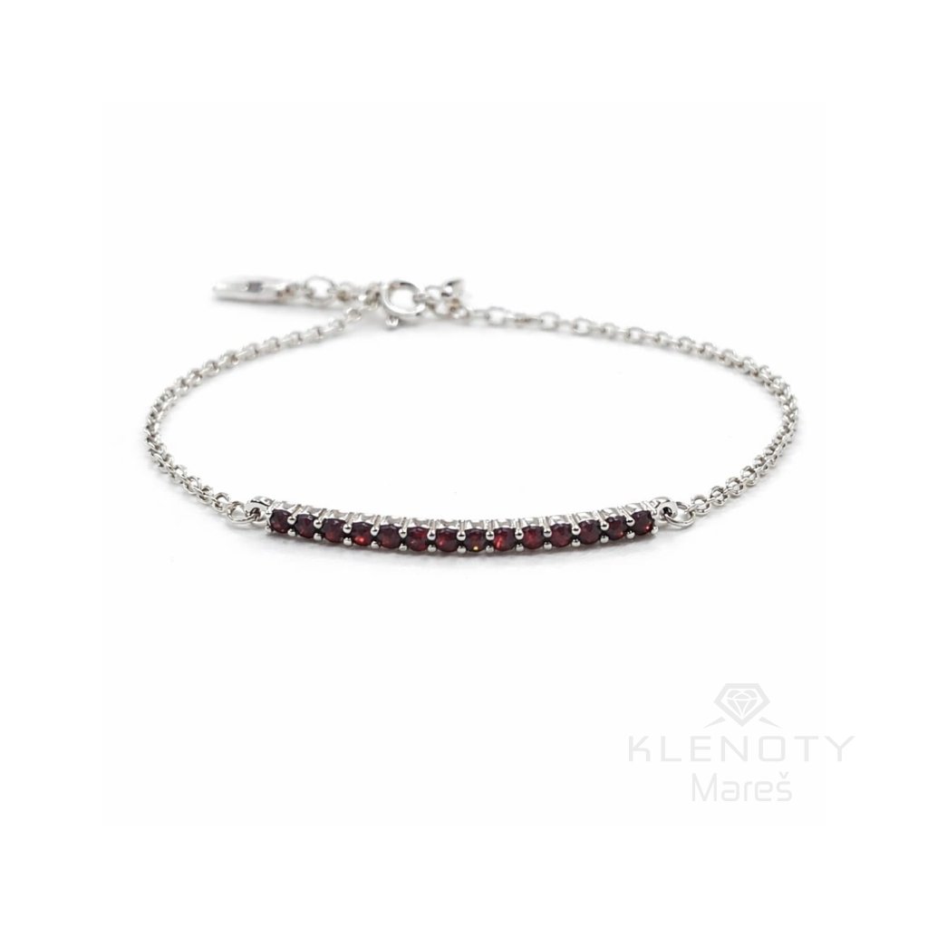 Stříbrný minimalistický náramek osázený Českým granátem.