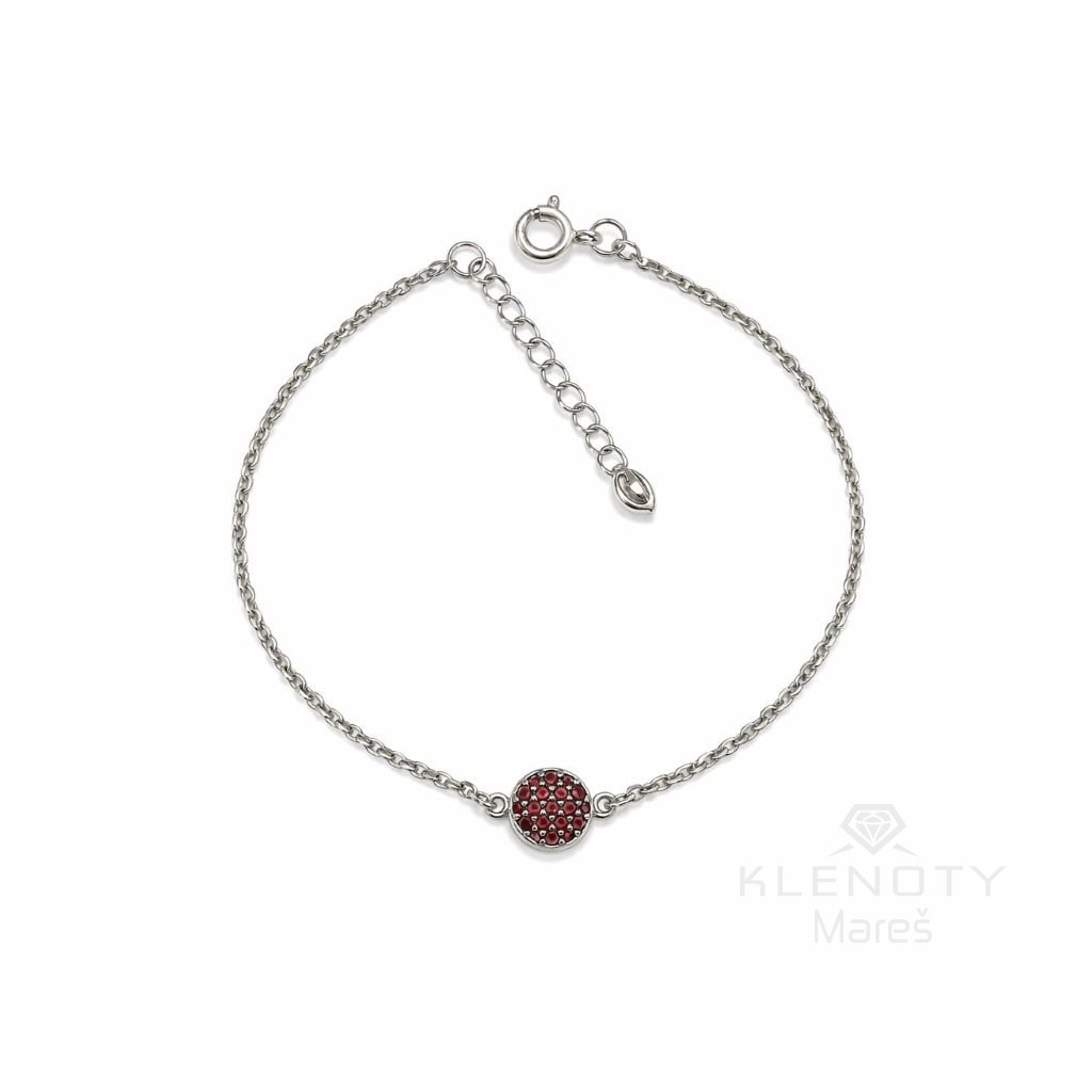 Stříbrný minimalistický náramek osázený Českým granátem s motivem kolečka.