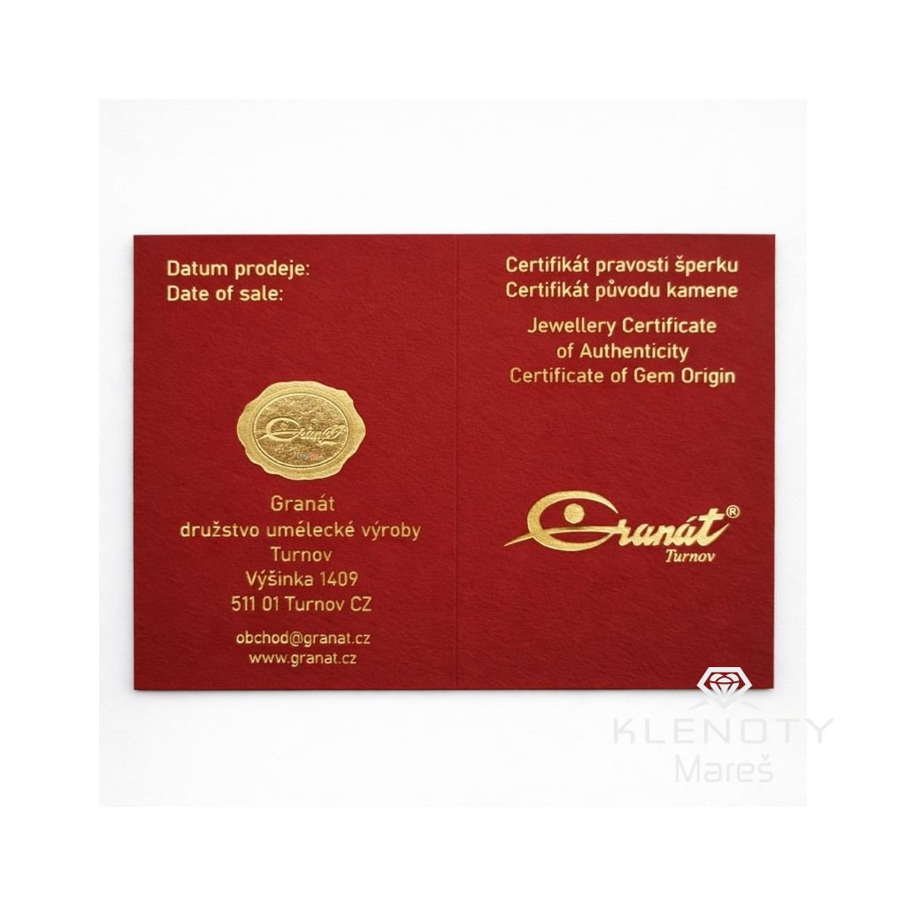 K šperku je přiložen certifikát o pravosti Českého granátu.