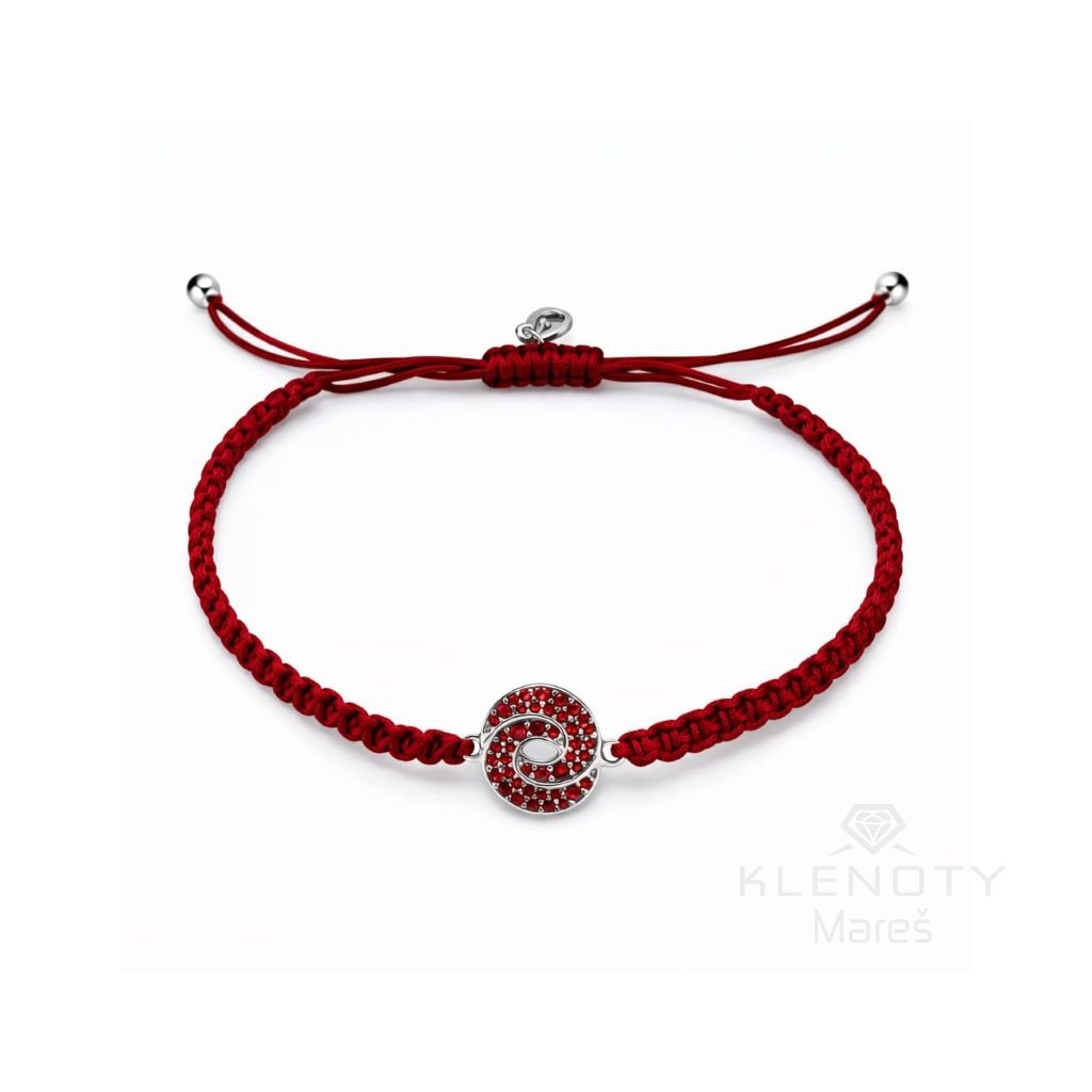 Stříbrný minimalistický náramek na šňůrce osázený Českým granátem.