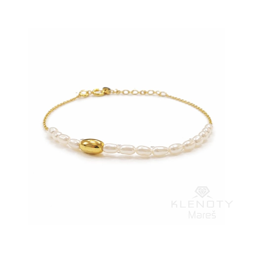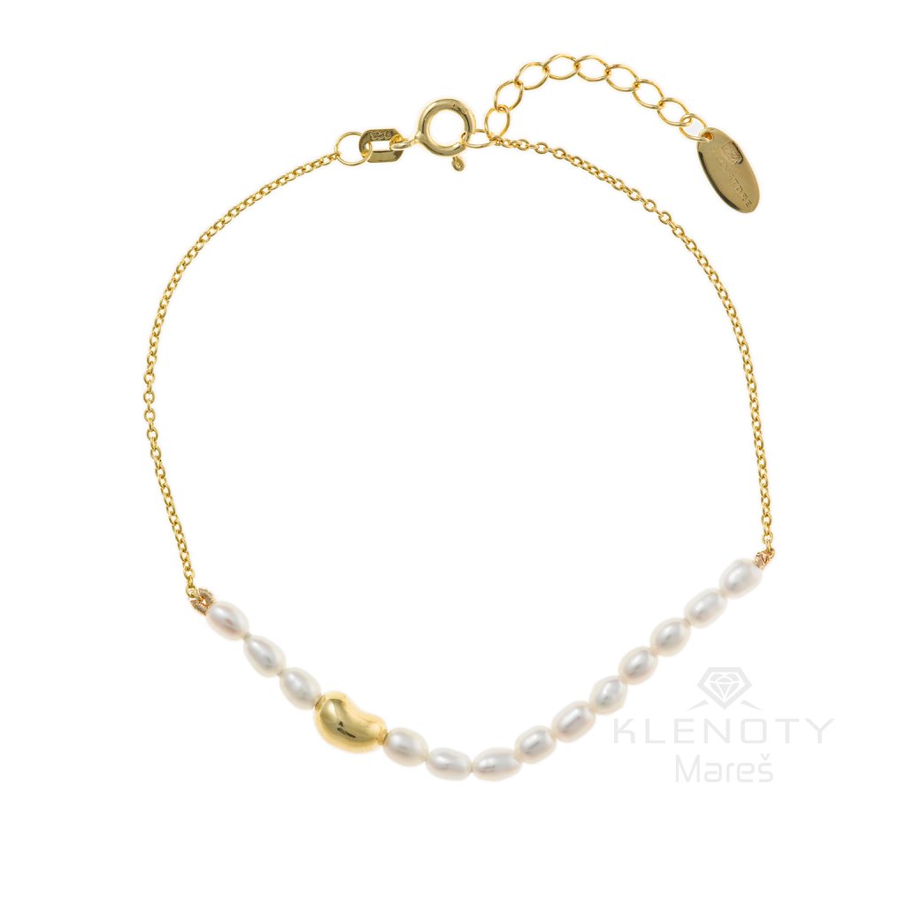 Stříbrný náramek pozlacený 18ti karátovým zlatem zdoben perličkami.