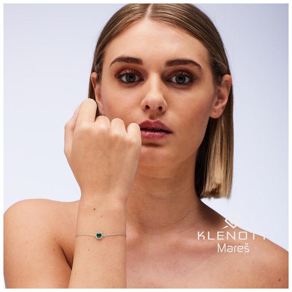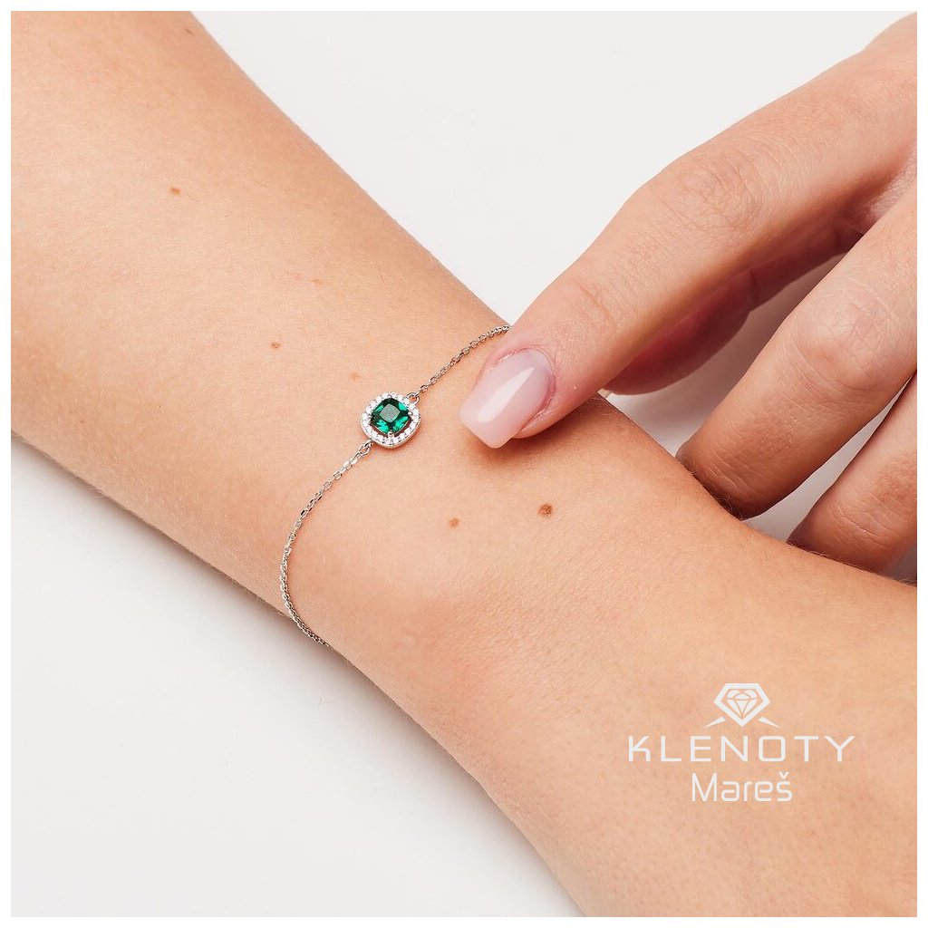 Elegantní dámský náramek osazený čirými a zelenými kubickými zirkony , který osloví každou ženu, jež hledá jemnost a šarm.